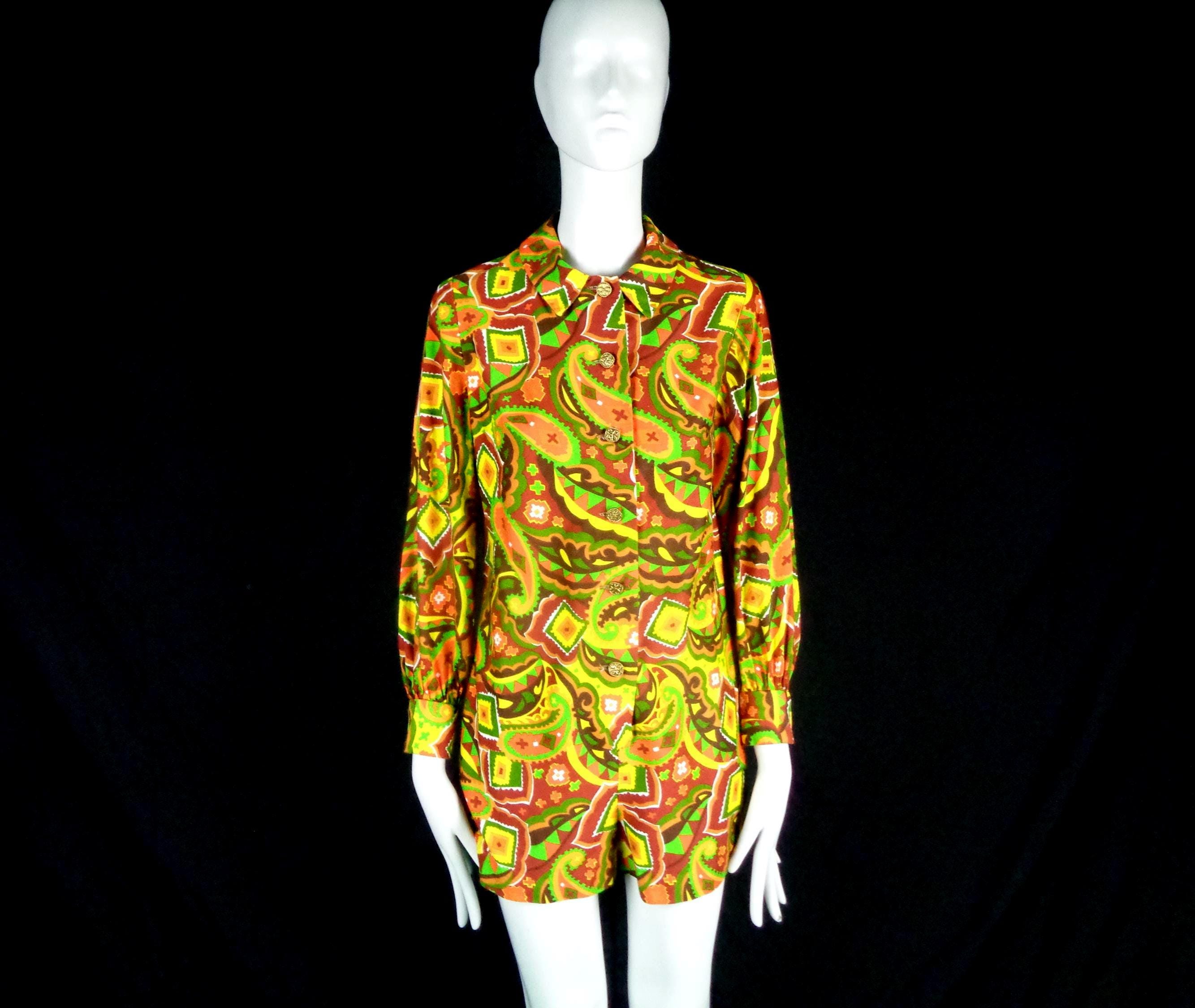 This lovely vibrant stylish comfy 1960s jumpsuit, romper, playsuit.
