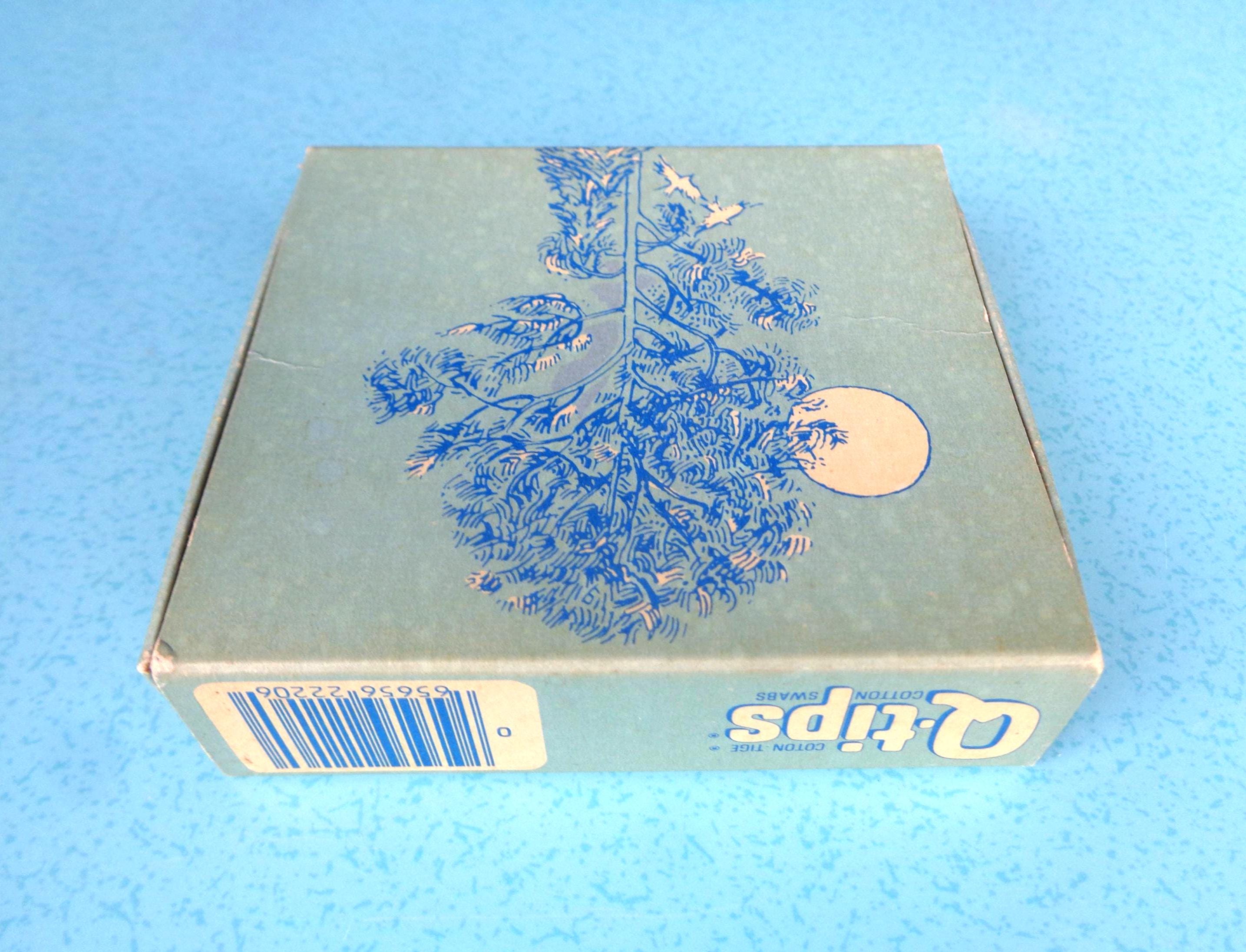 Features most of the original cotton swabs that are included, with a decorated vegetation with birds and the sun, 3v pictures of ideas how to use and where to store the box.
