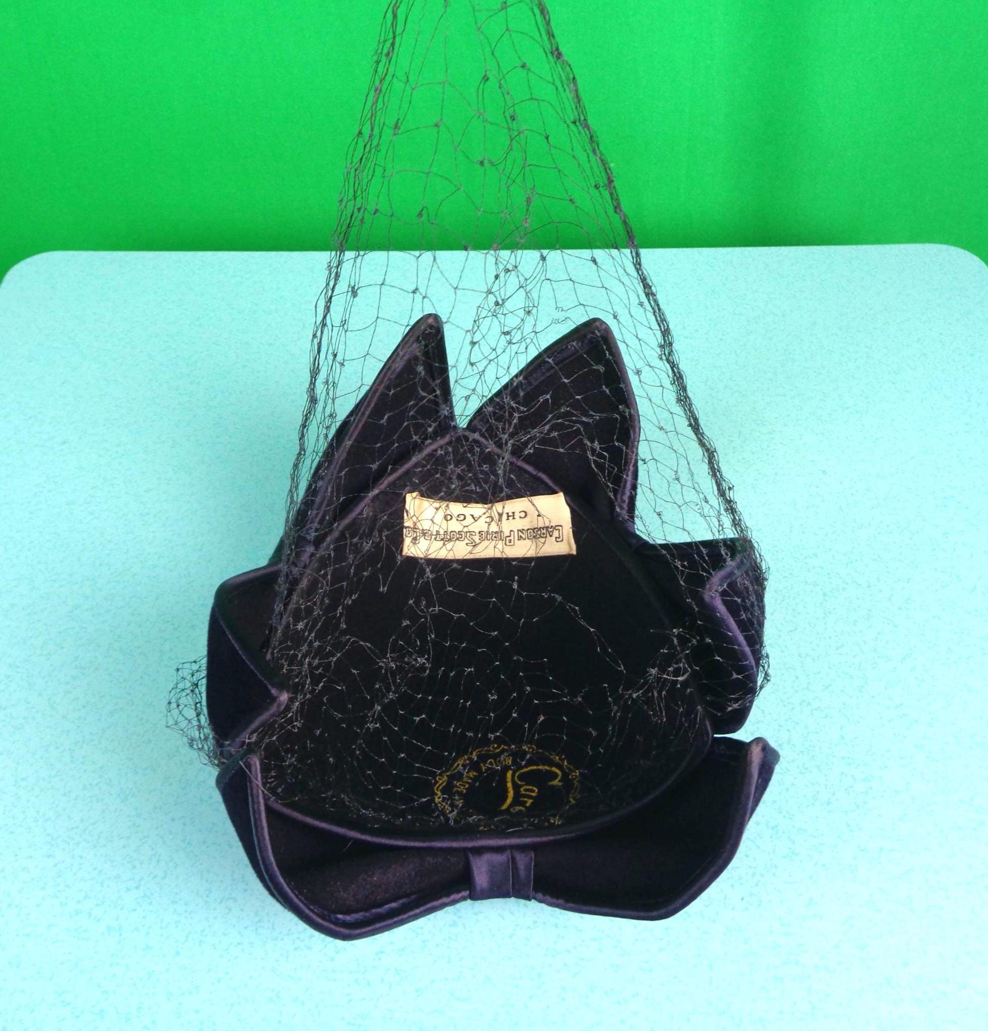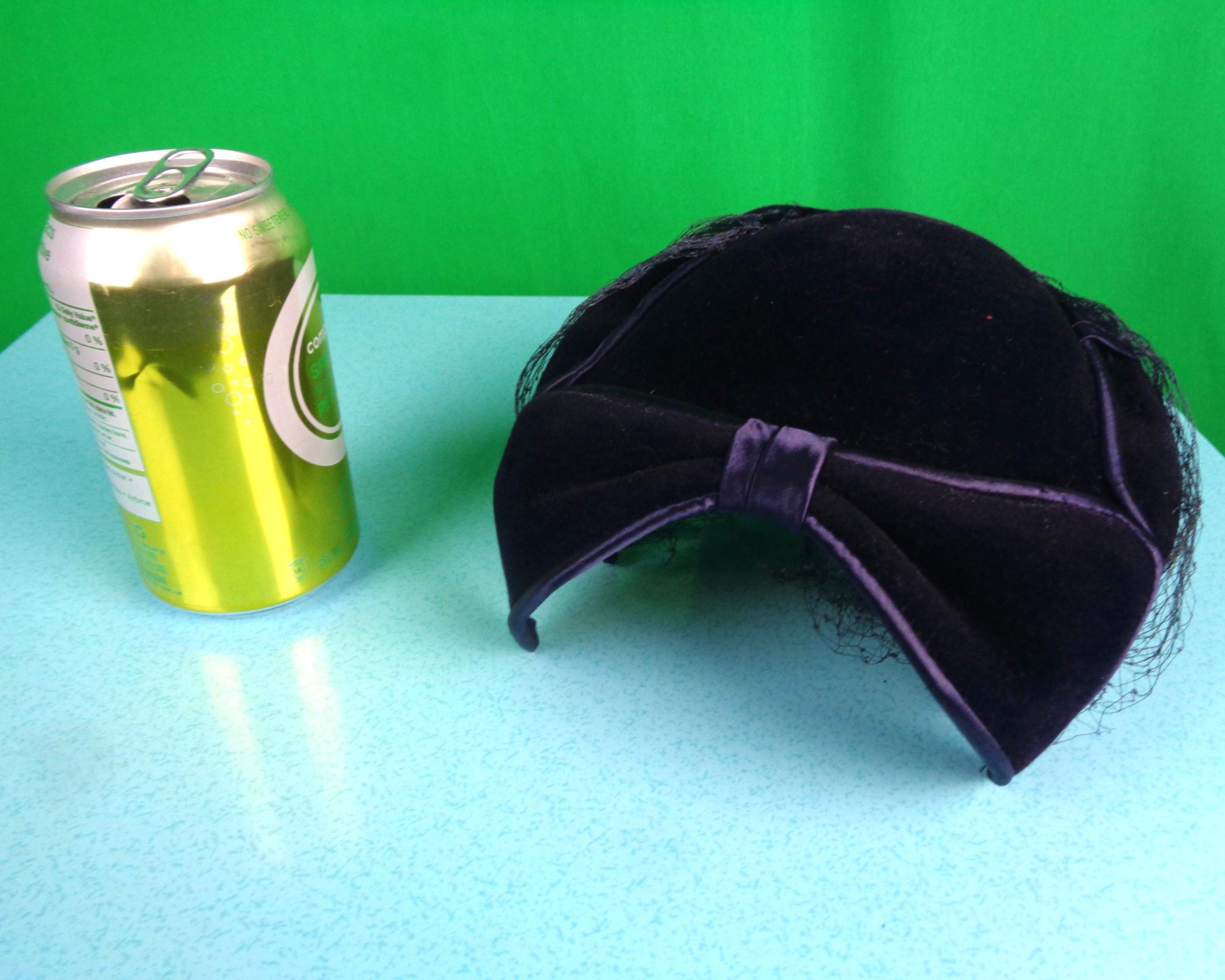 Features a front decorative veil wounded veil that can be removed or kept, a front wrap bow, with 4 clamp wire points to hold the hat in place, with the original factory tag inside, with satin trim detail along the edges, with a soft material throughout!