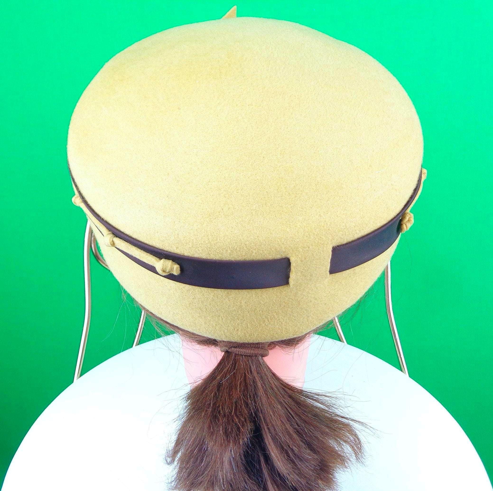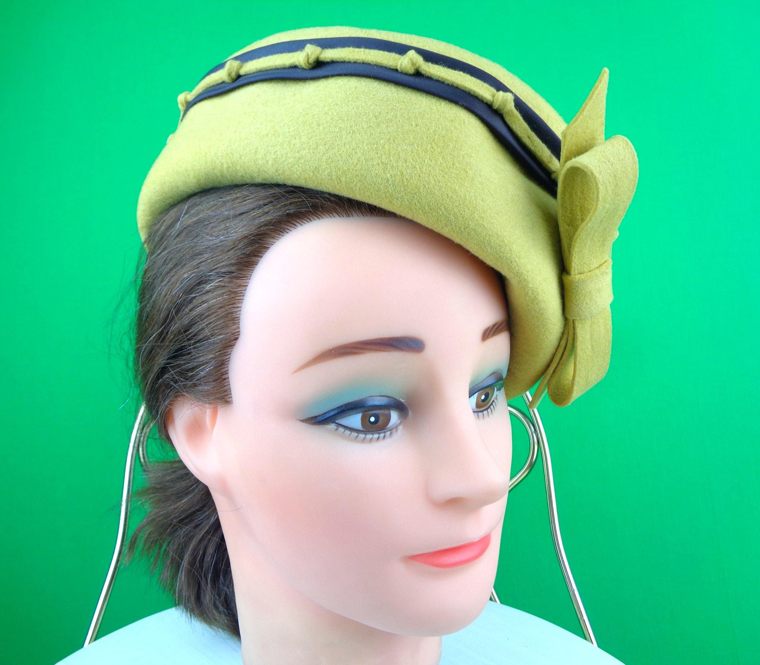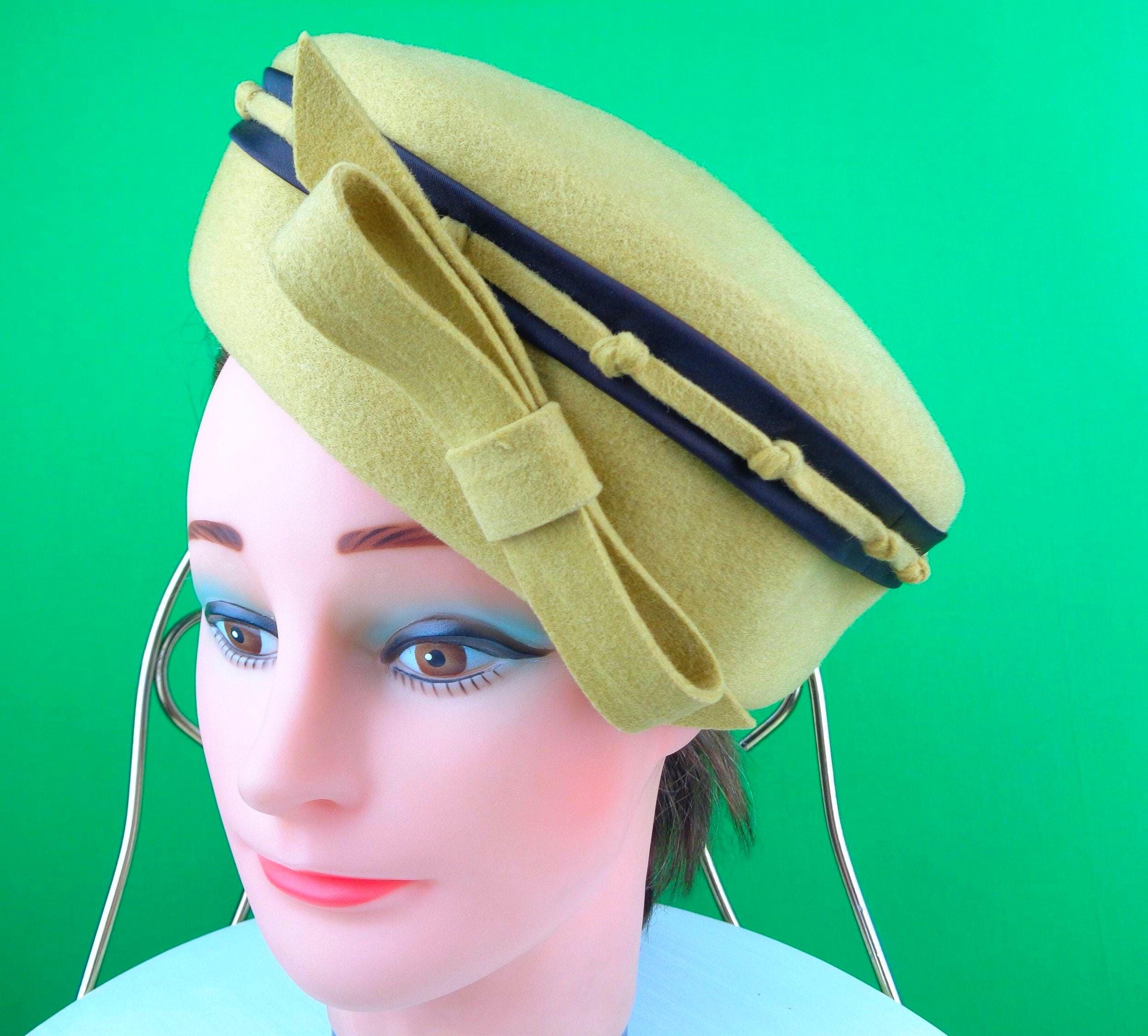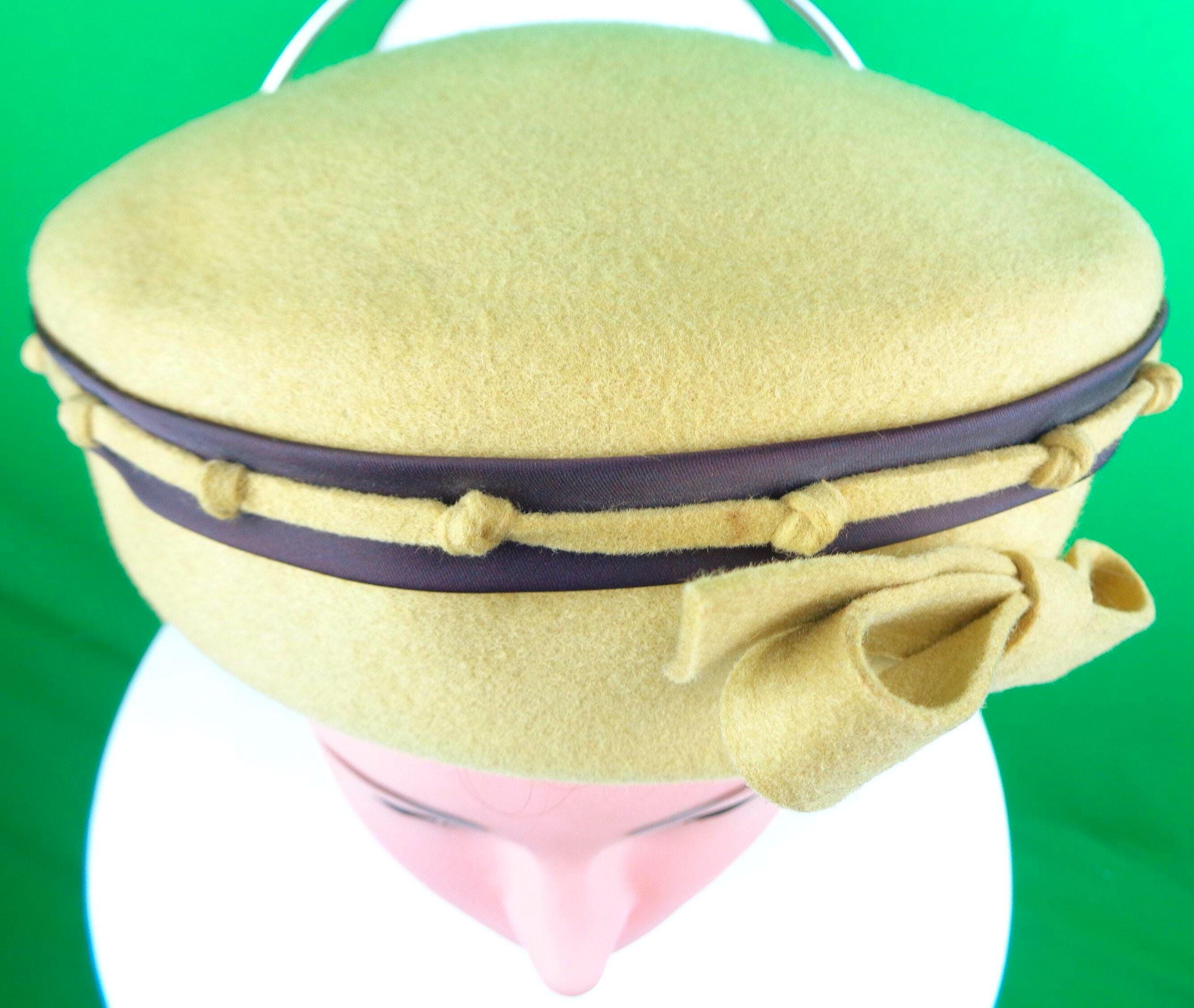 This lovely stylish 1940s 50s retro pillbox capulet cap top hat. Features a nicely crafted knotting satin band around the top edge, with a matching angle front bow, with soft material throughout! Great compliment piece!