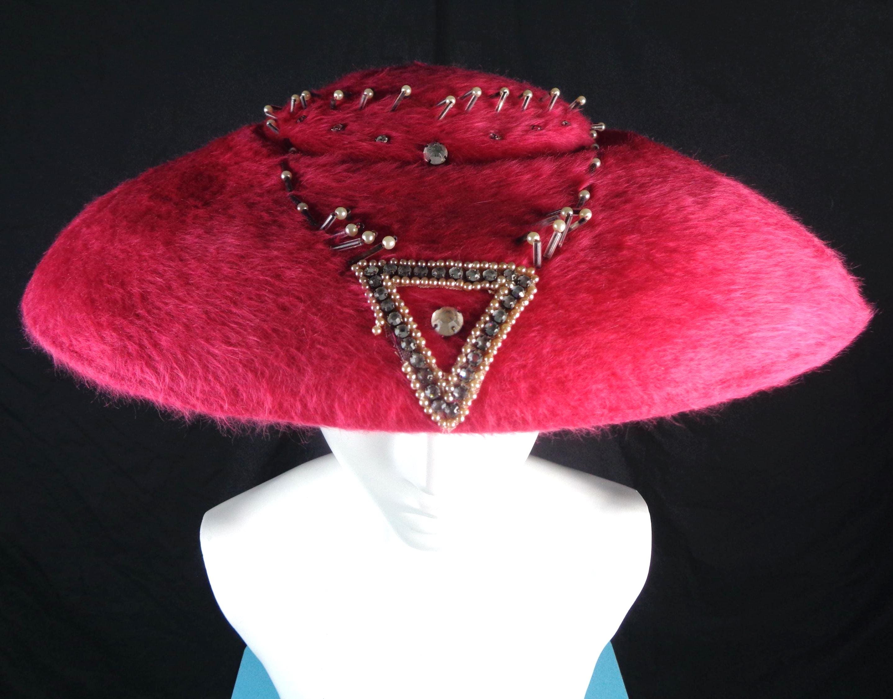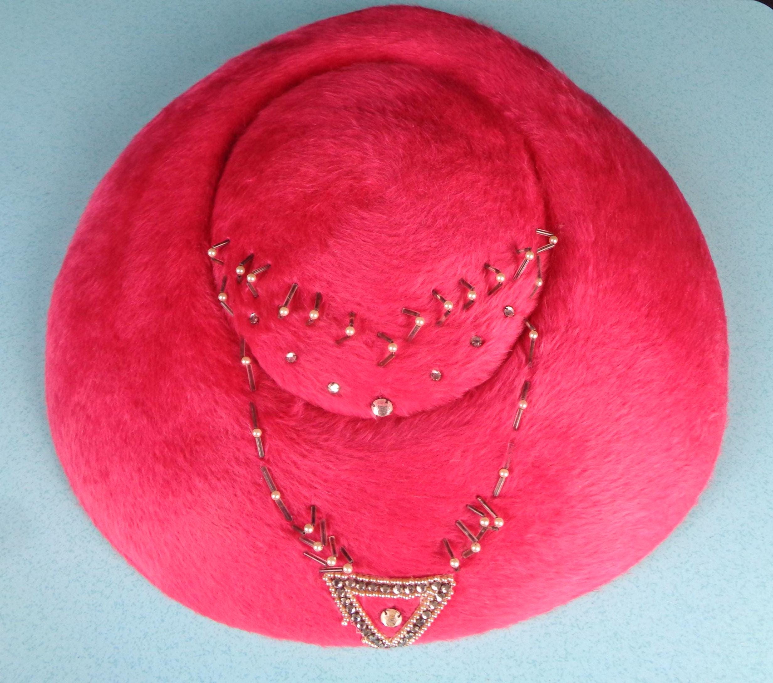 This lovely vibrant stylish rare 1940s 50s "the new look", capulet, hat.