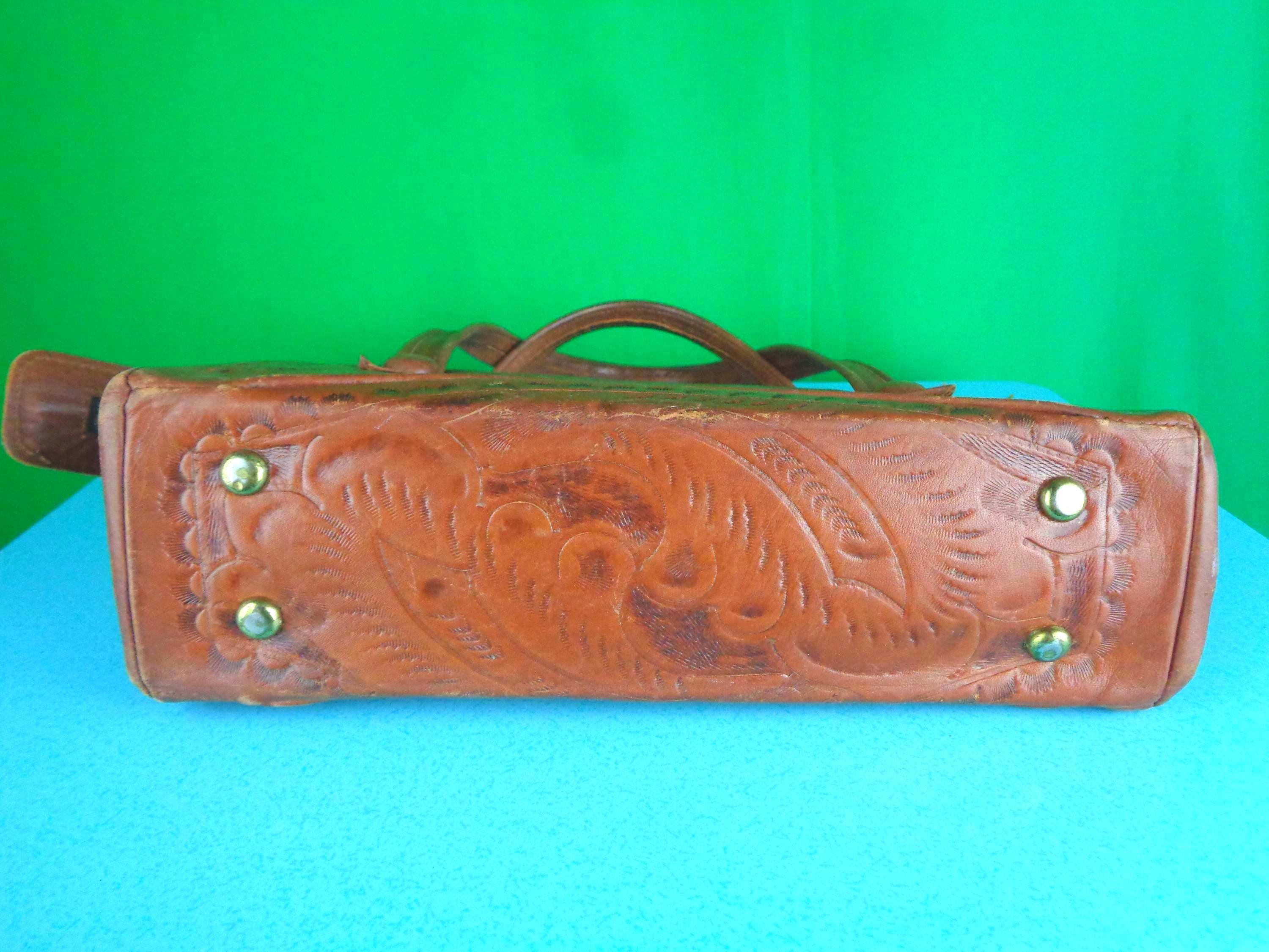 This lovely stylish 1950s 60s top handle, handbag, purse features sturdy doubled top handles, with 6 compartments for storage, original factory tag, a floral tooled finishing and soft material throughout! Great piece!