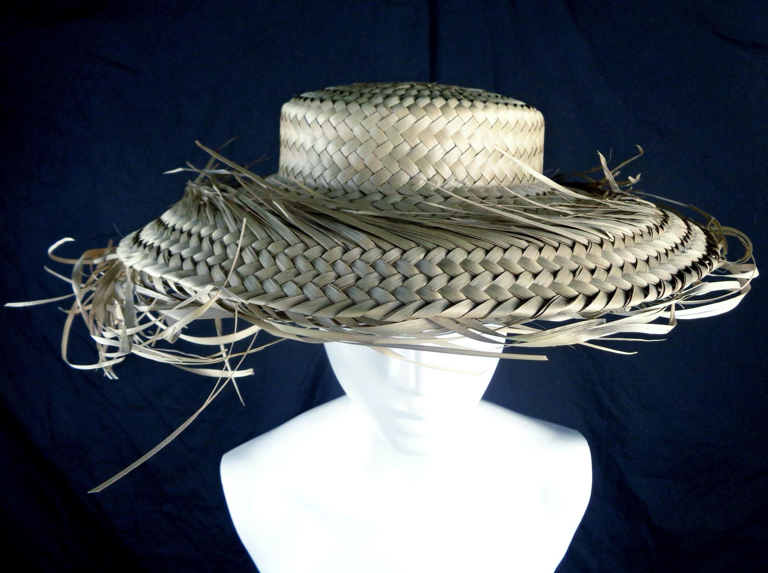 Features a the original factory string, once was a tag, with a wide brim, shallow crown, layered styled fringe edges, with a woven, braided pattern, design throughout! Great compliment piece!