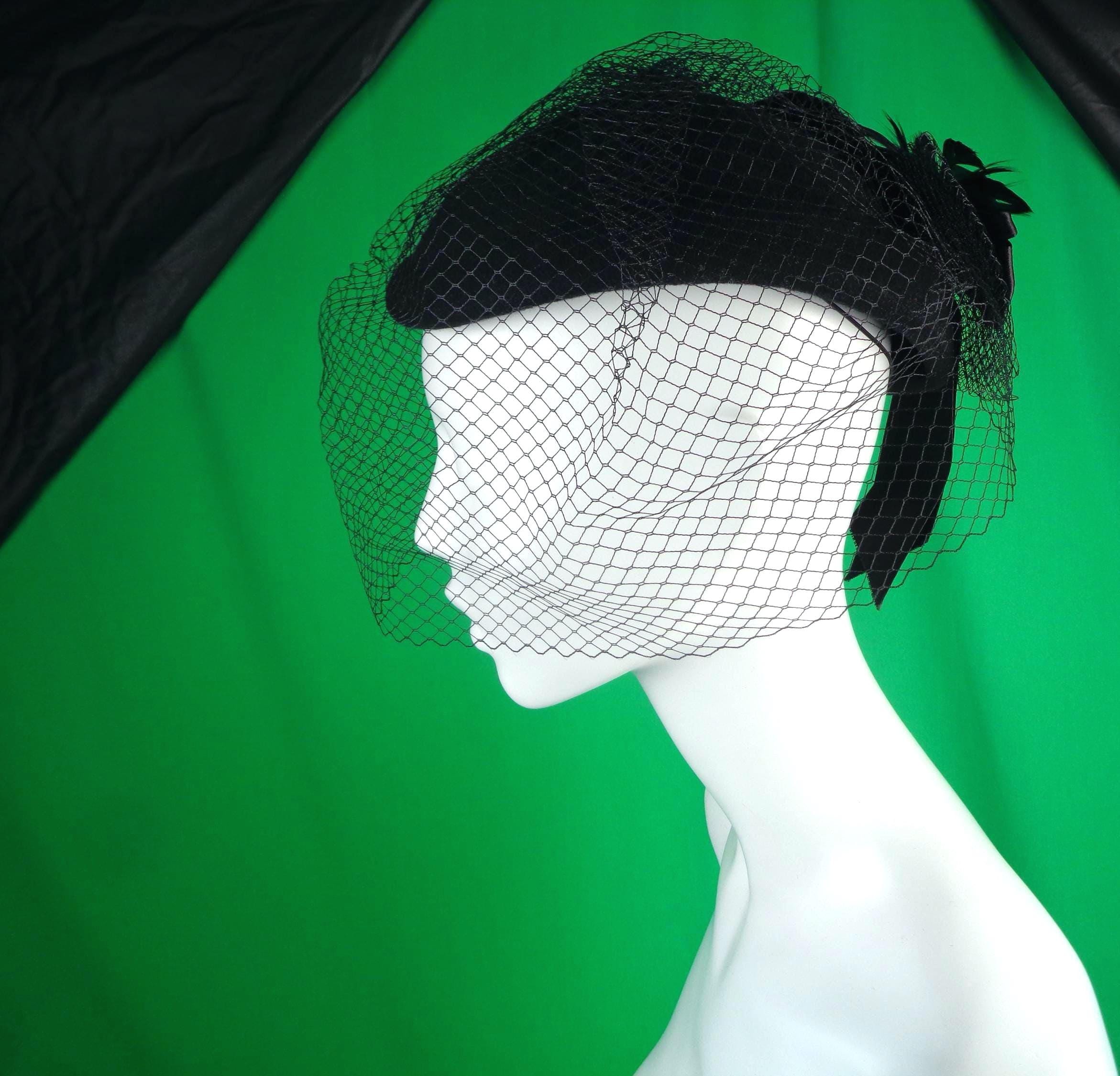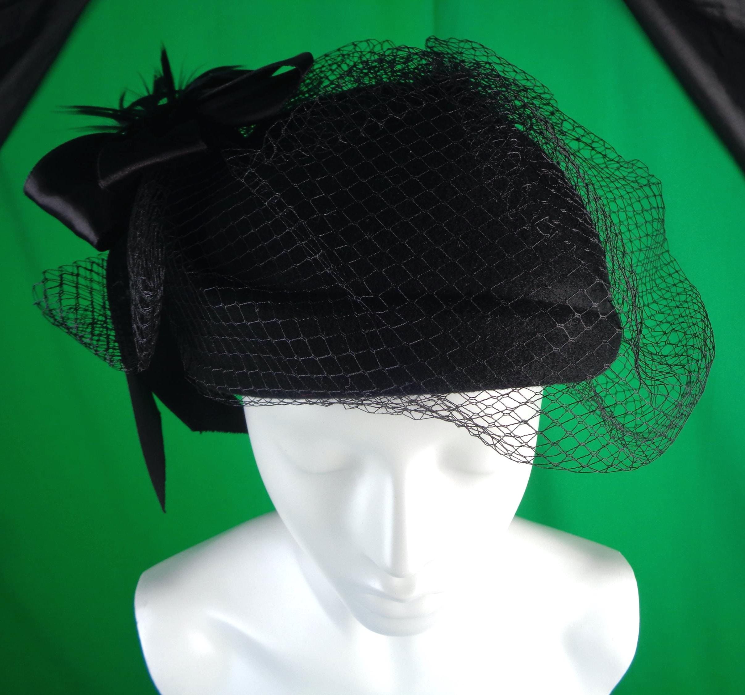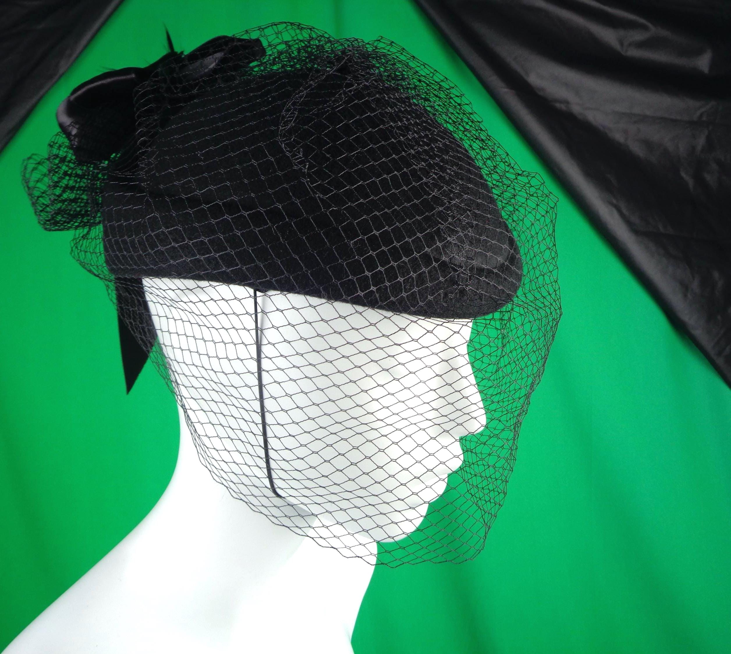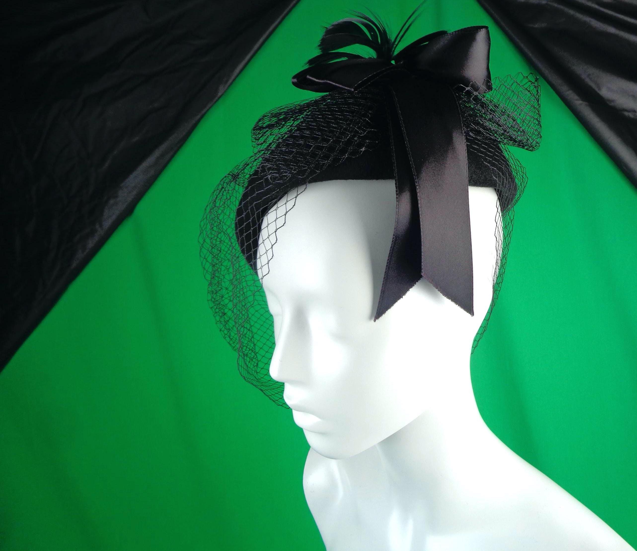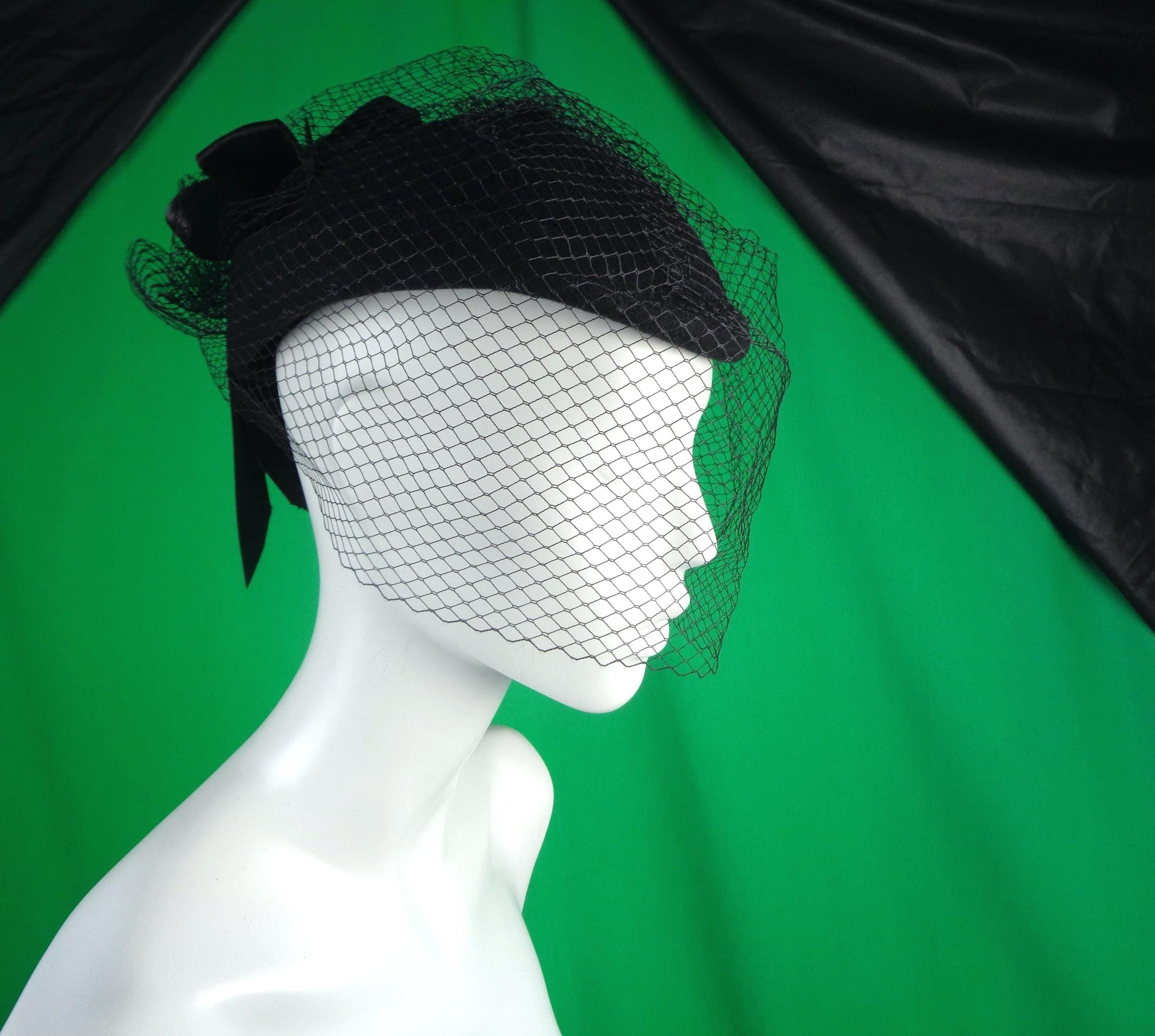 This lovely elegant stylish 1970s retro veil hat, millinery bow capulet.