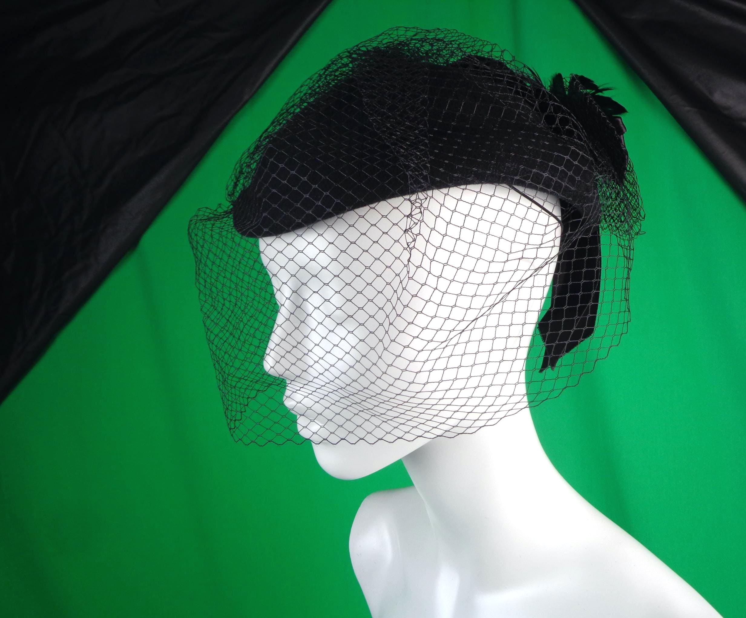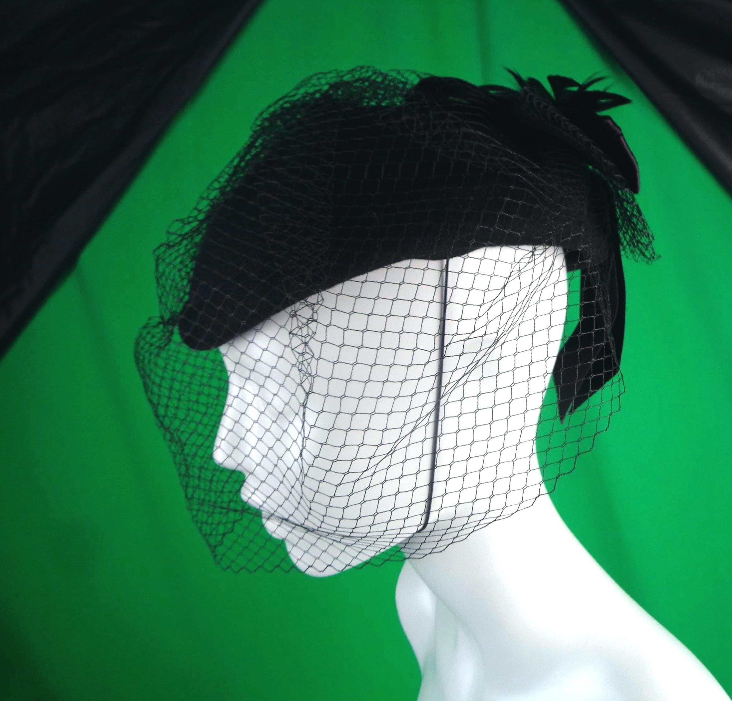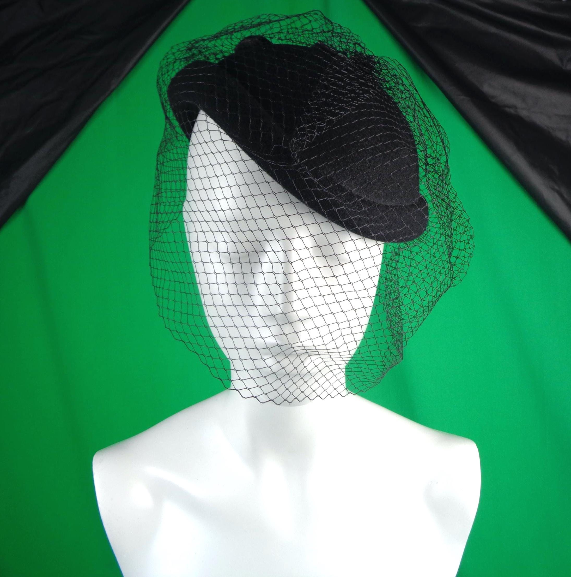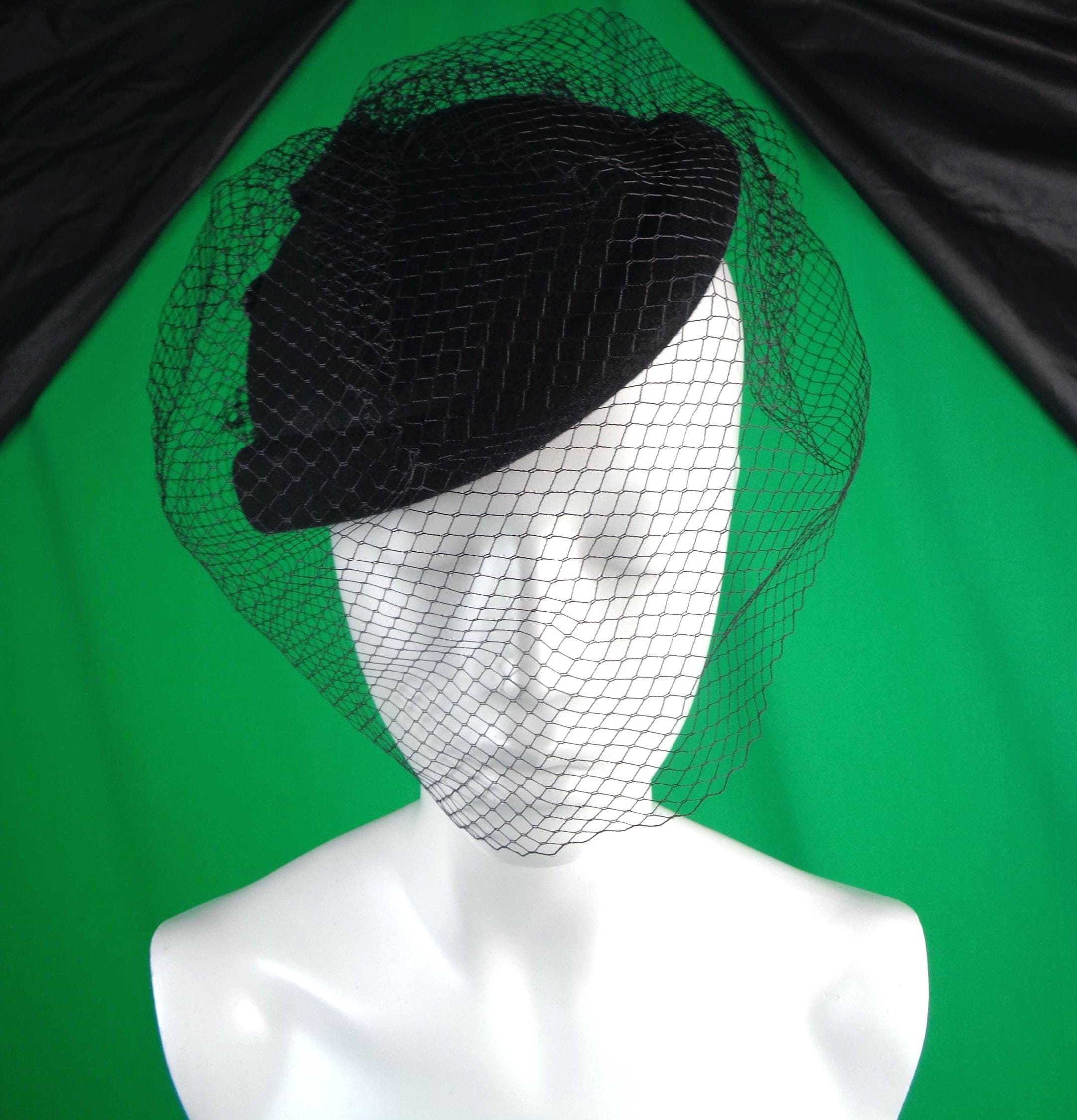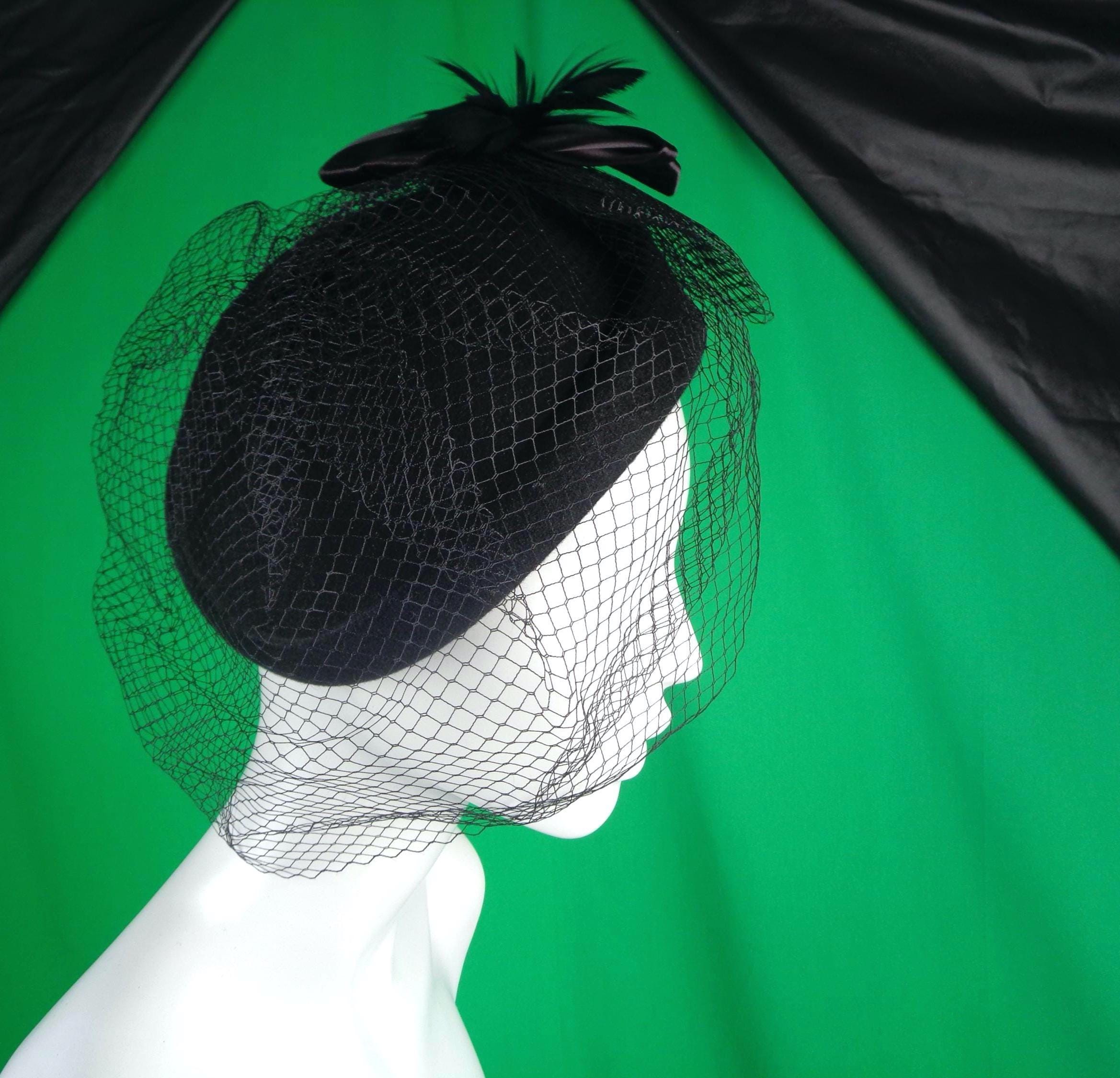 This lovely elegant stylish 1970s retro veil hat, millinery bow capulet.