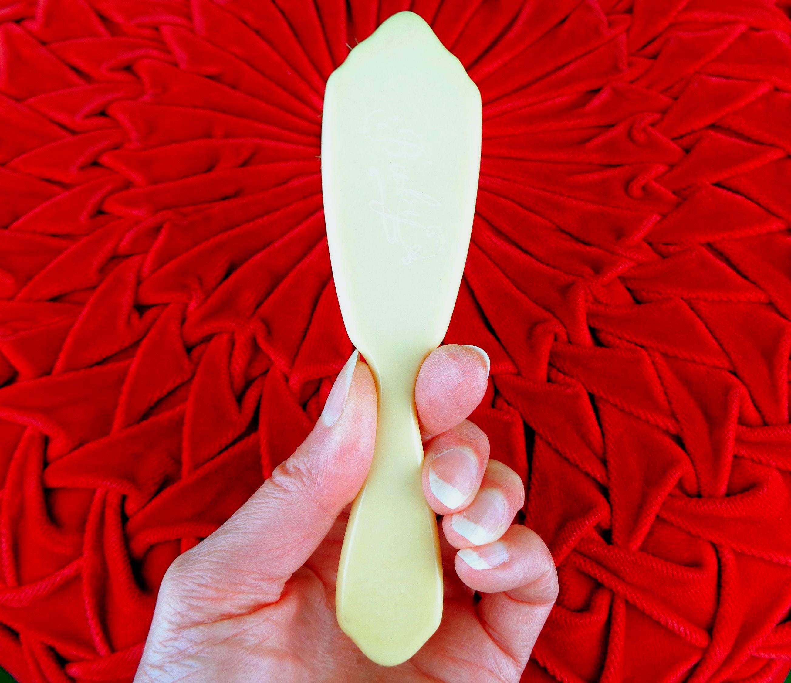 Yellow baby brush has a carving on the back that says "Baby" with a wave top and handle design and soft hair bristles! Both great pieces!
