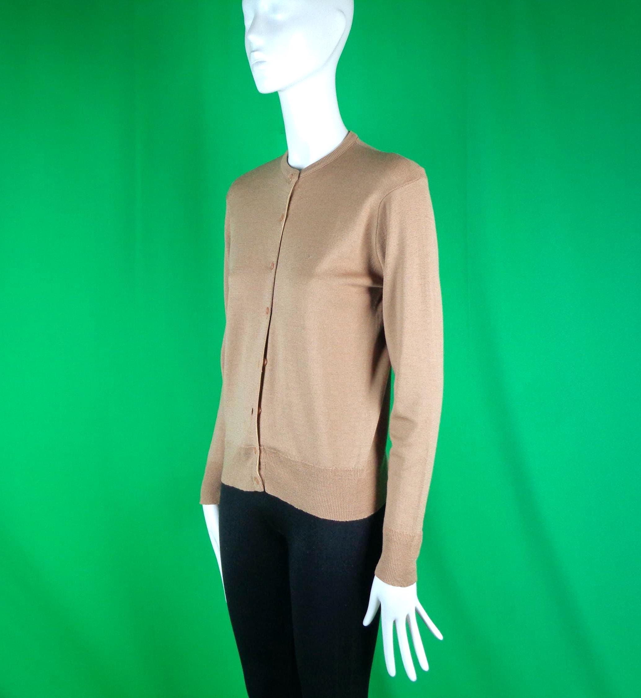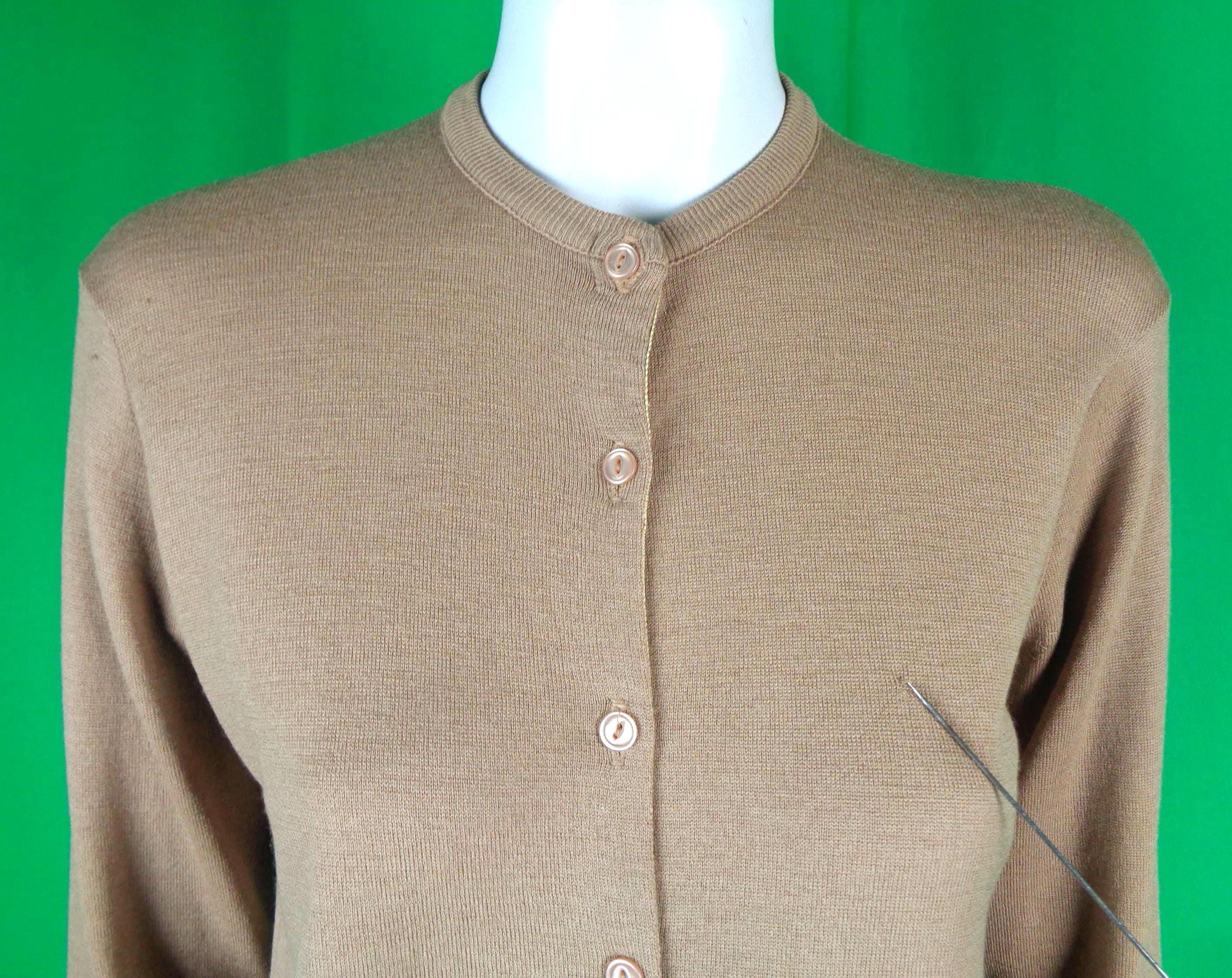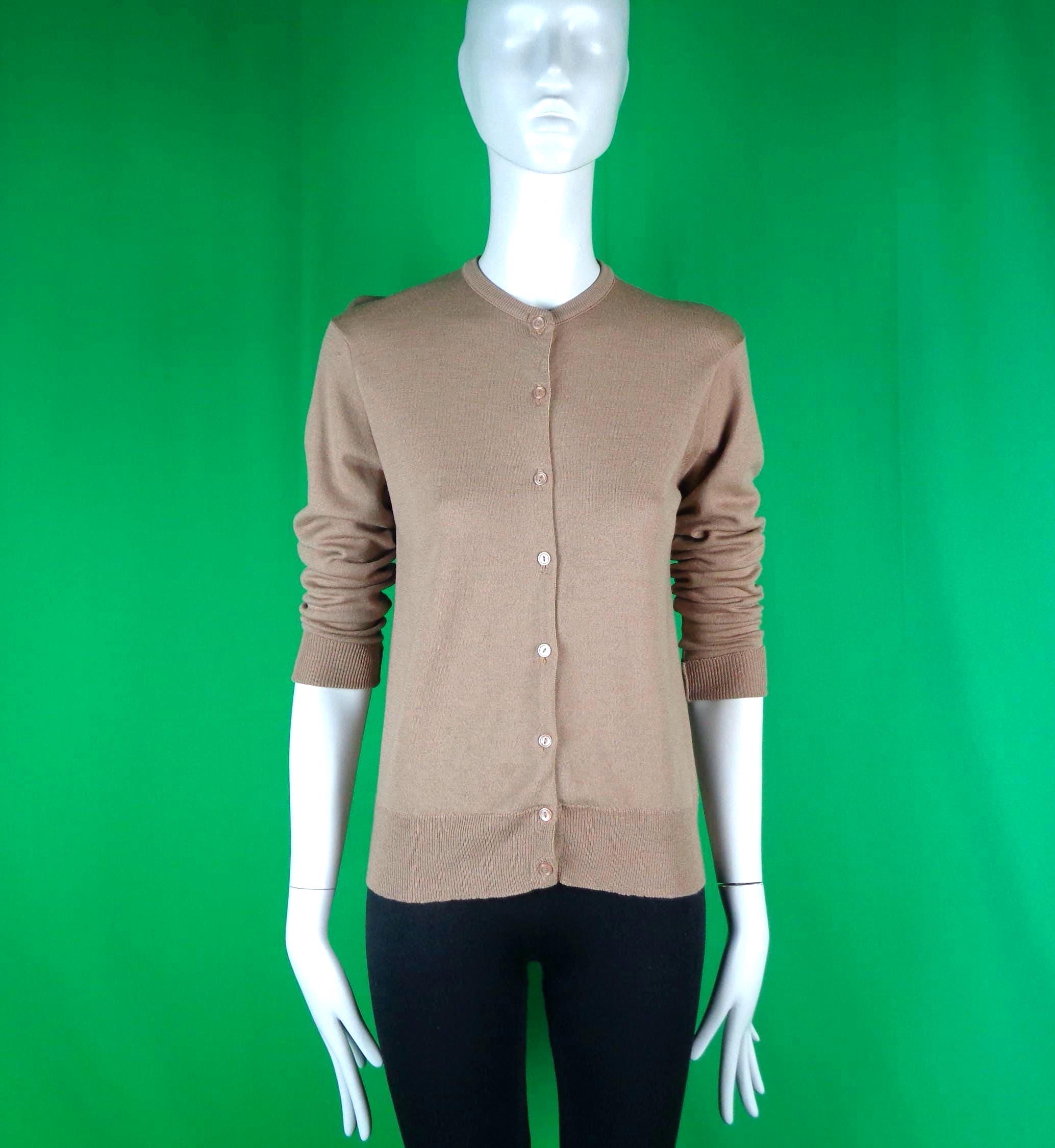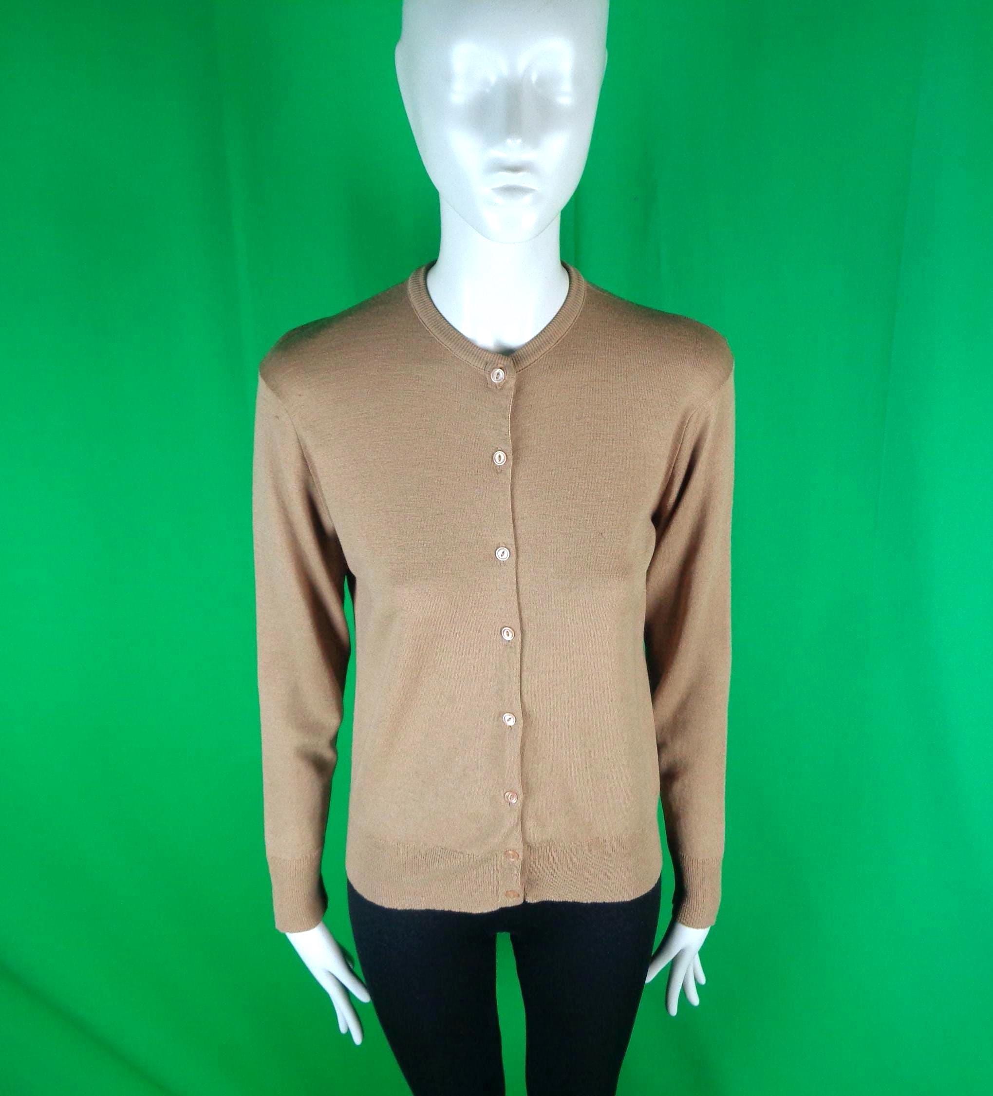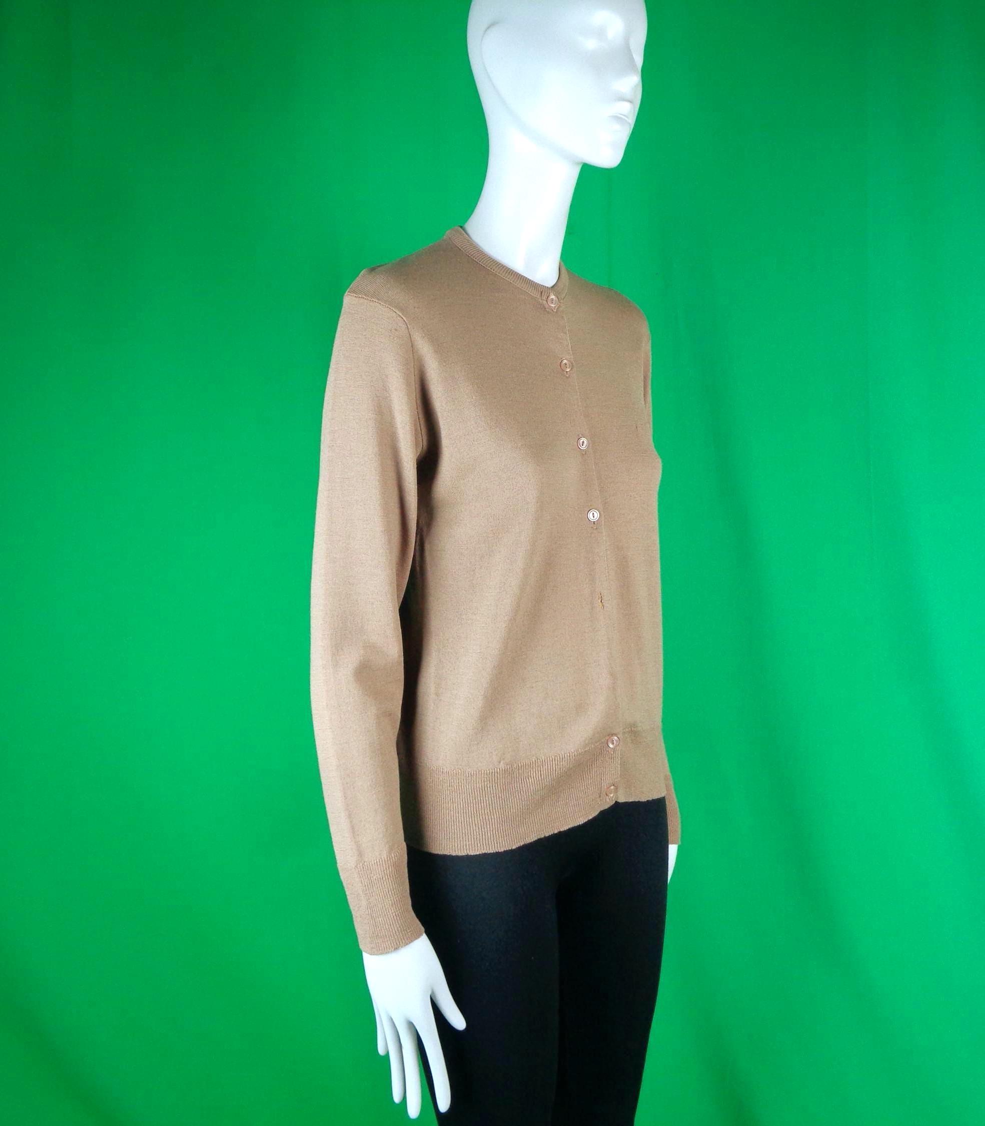 Features 8 front matching pearl buttons, round rib collar, with a fine knit soft fabric, material throughout! Great compliment piece!