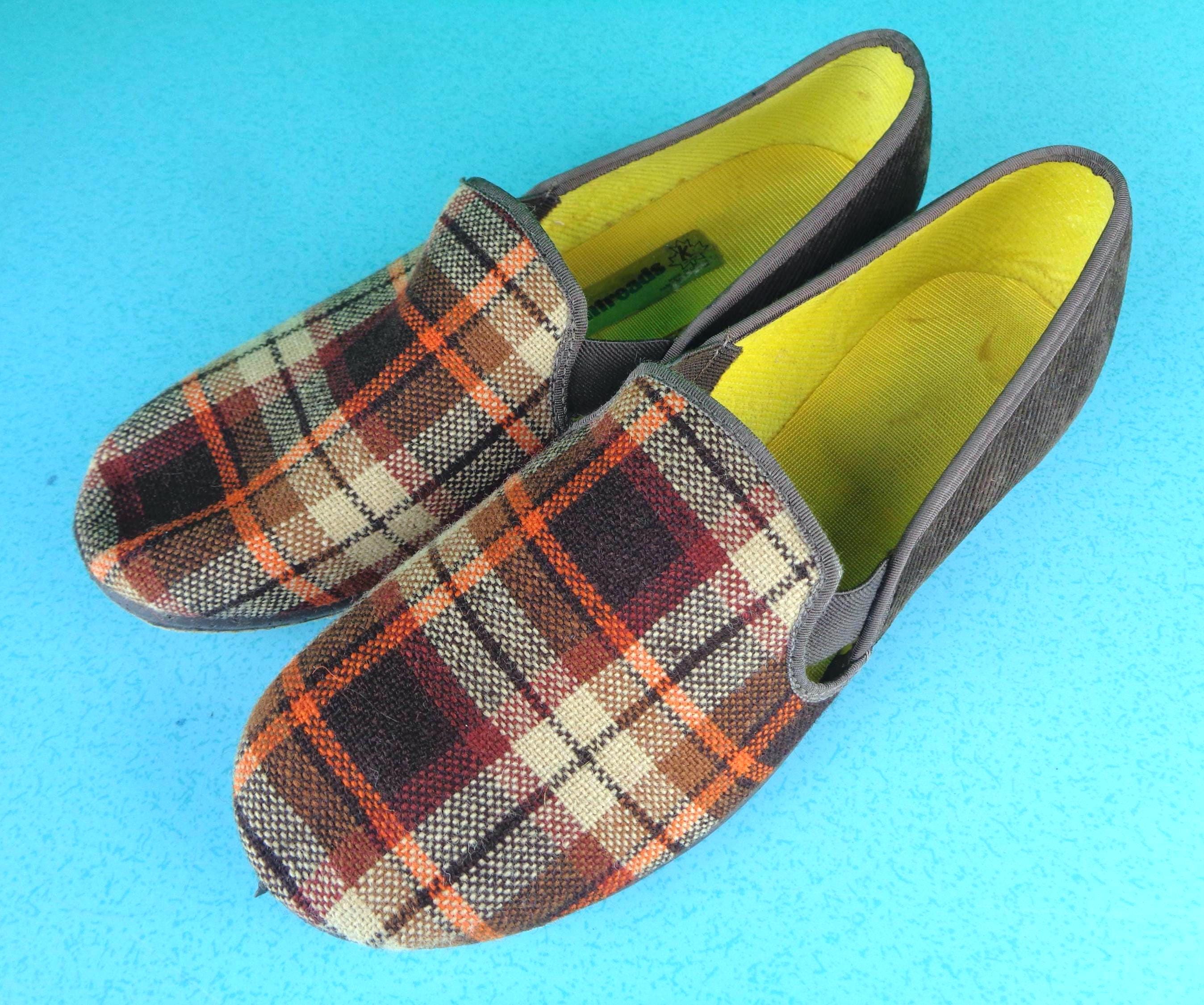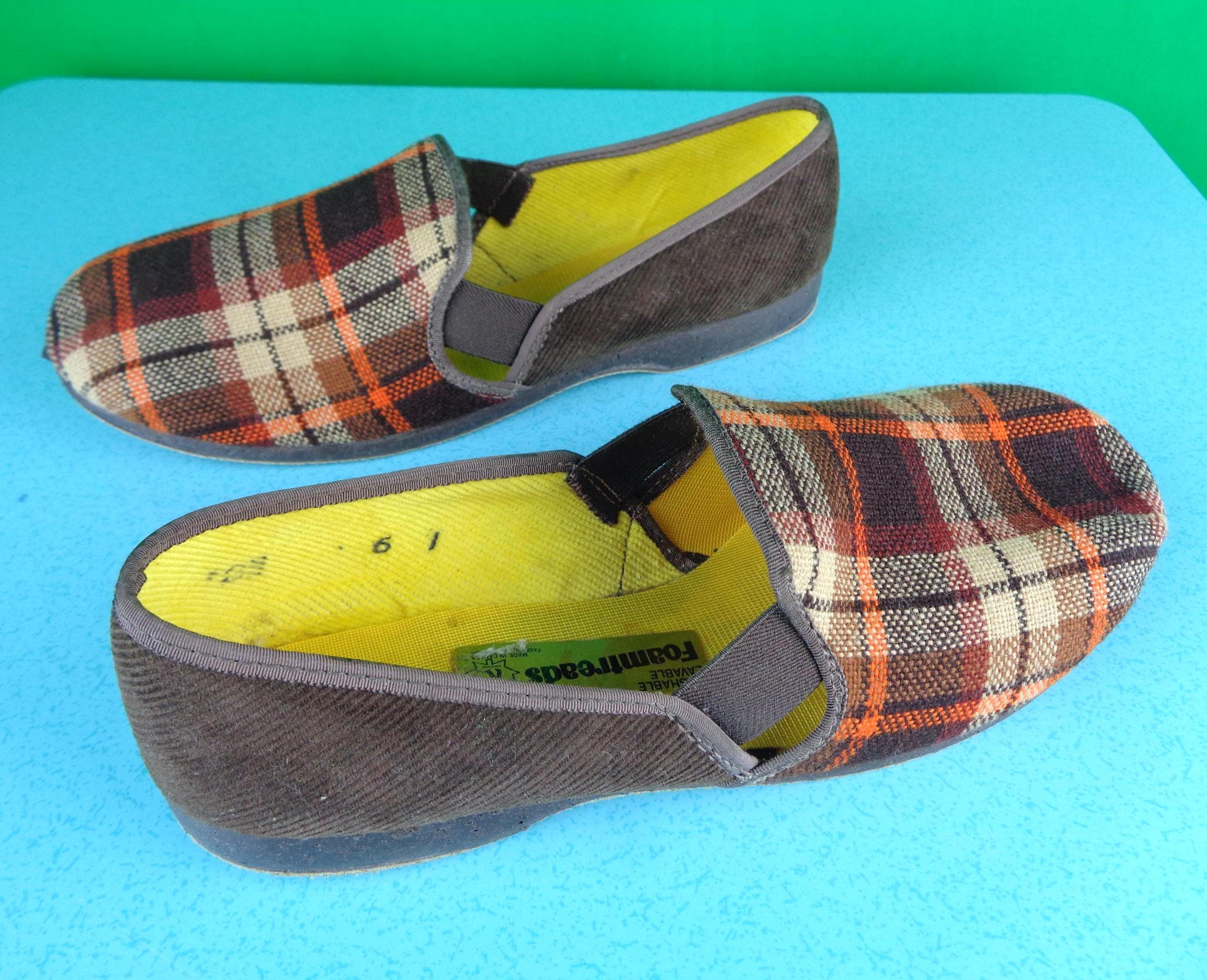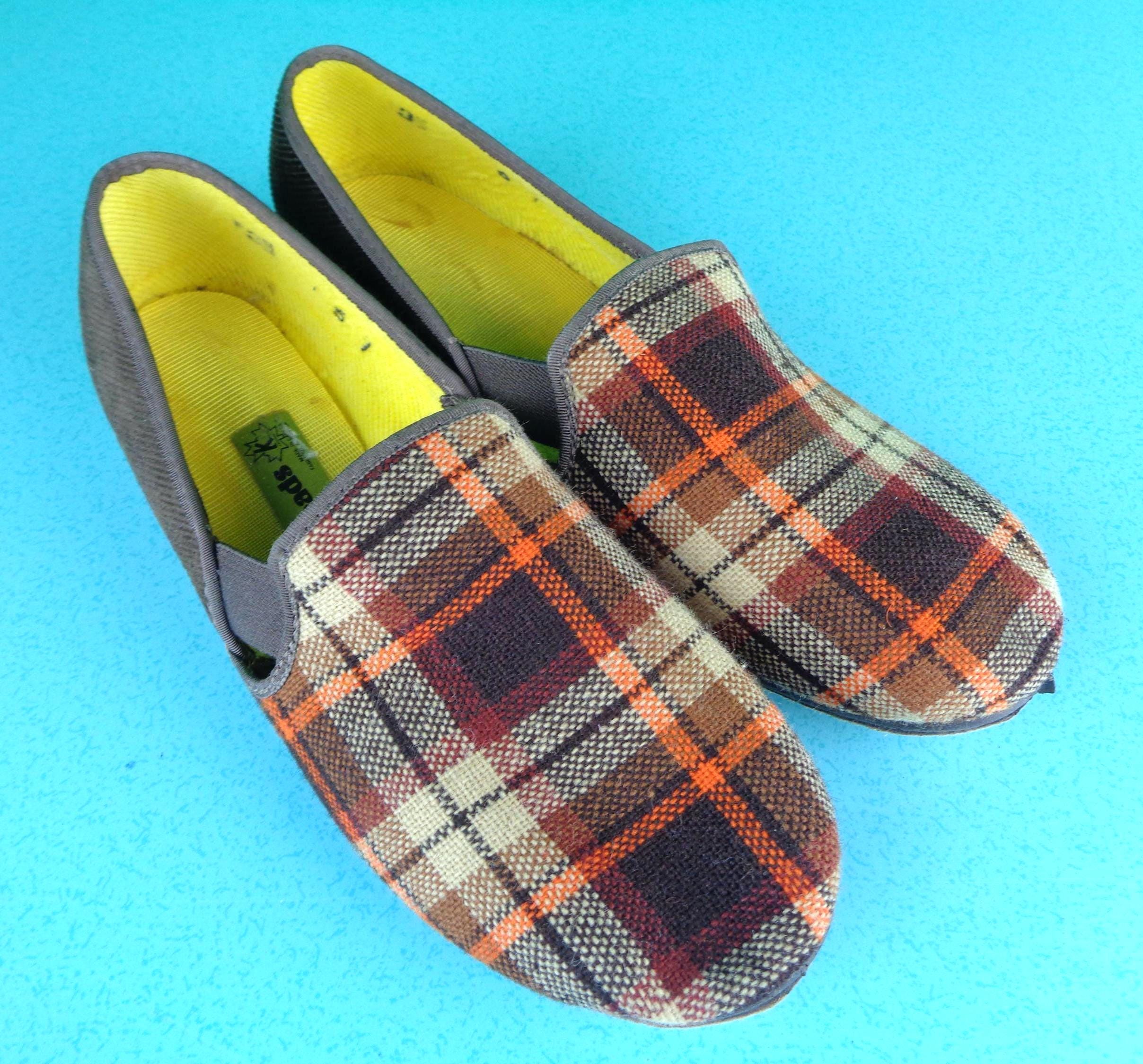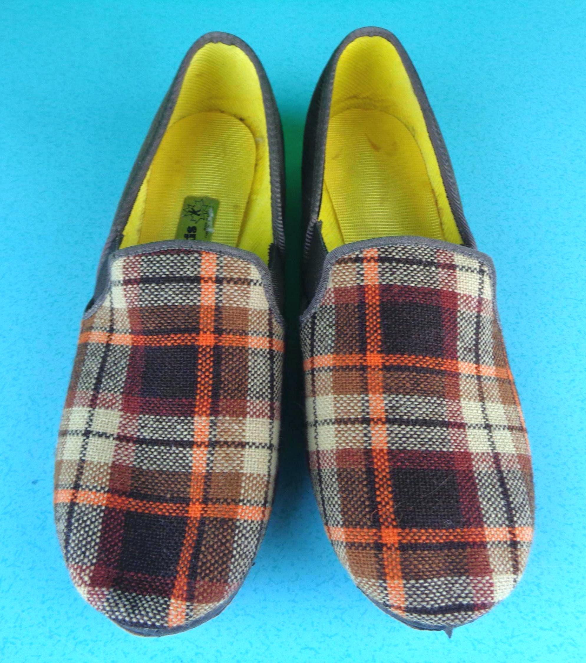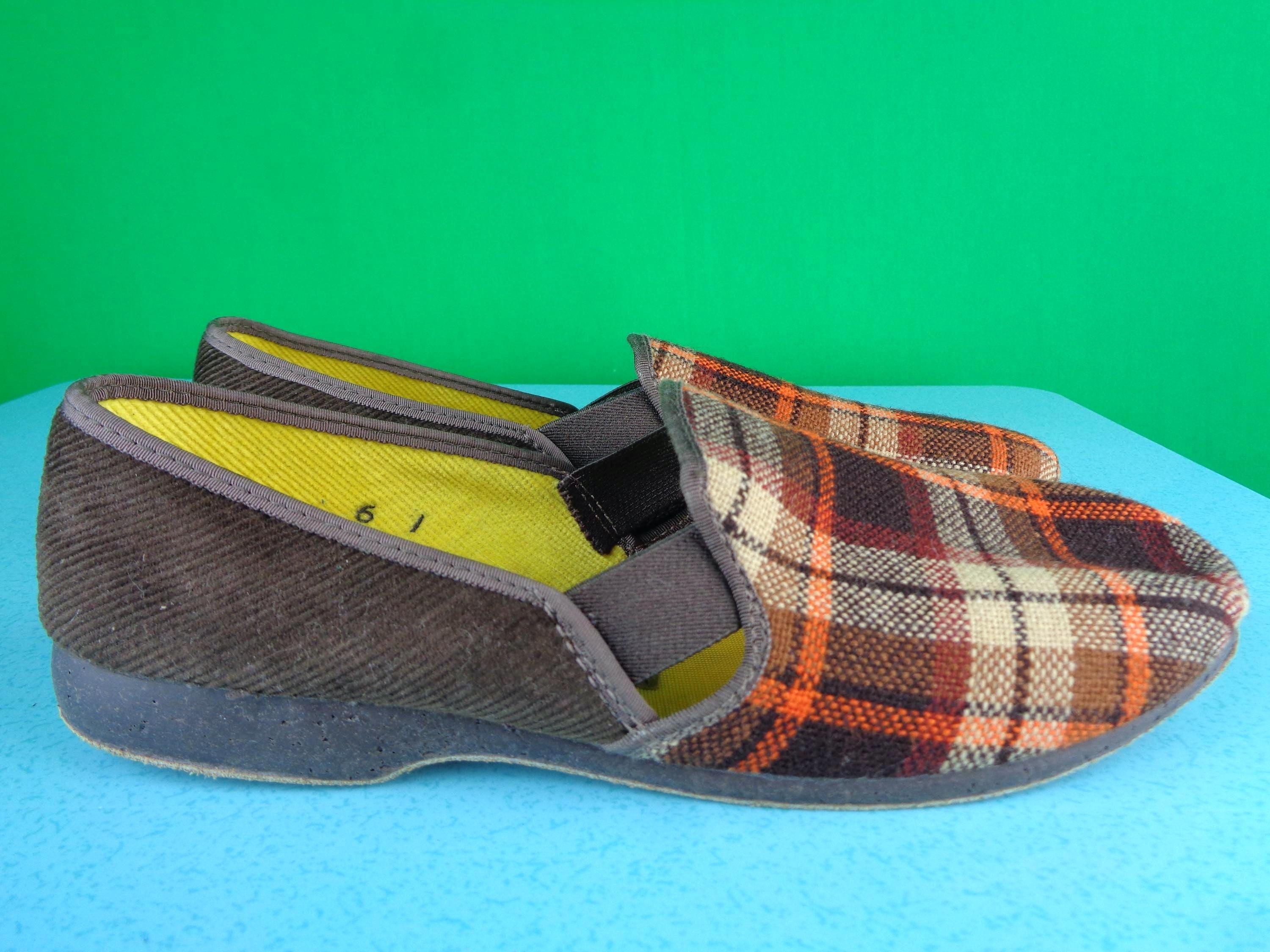 These lovely comfy 1960s 70s retro bedroom, house slippers. Features elastic sides, two tone of wool and corduroy pattern, design throughout! Great slippers to add to your loungewear!