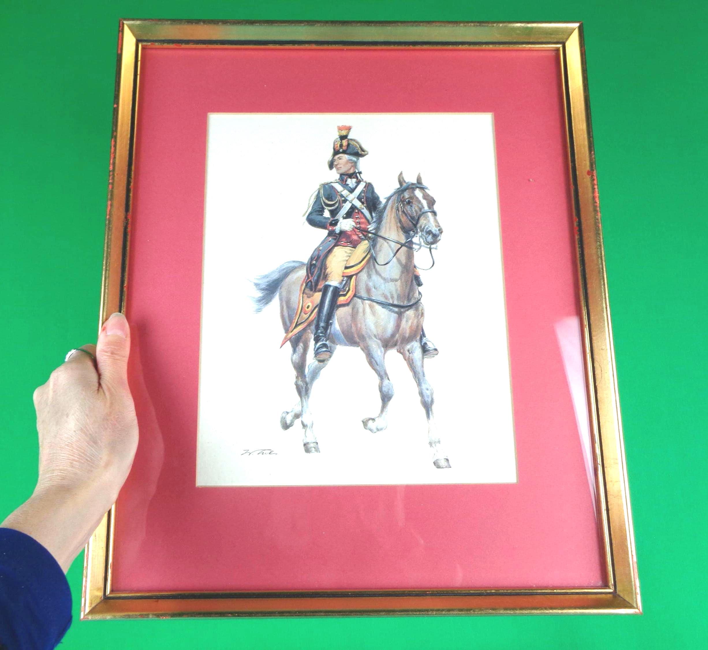 Features a posed, gazing military man on his horse, in a water color, drawing has been professionally framed! Great compliment piece!