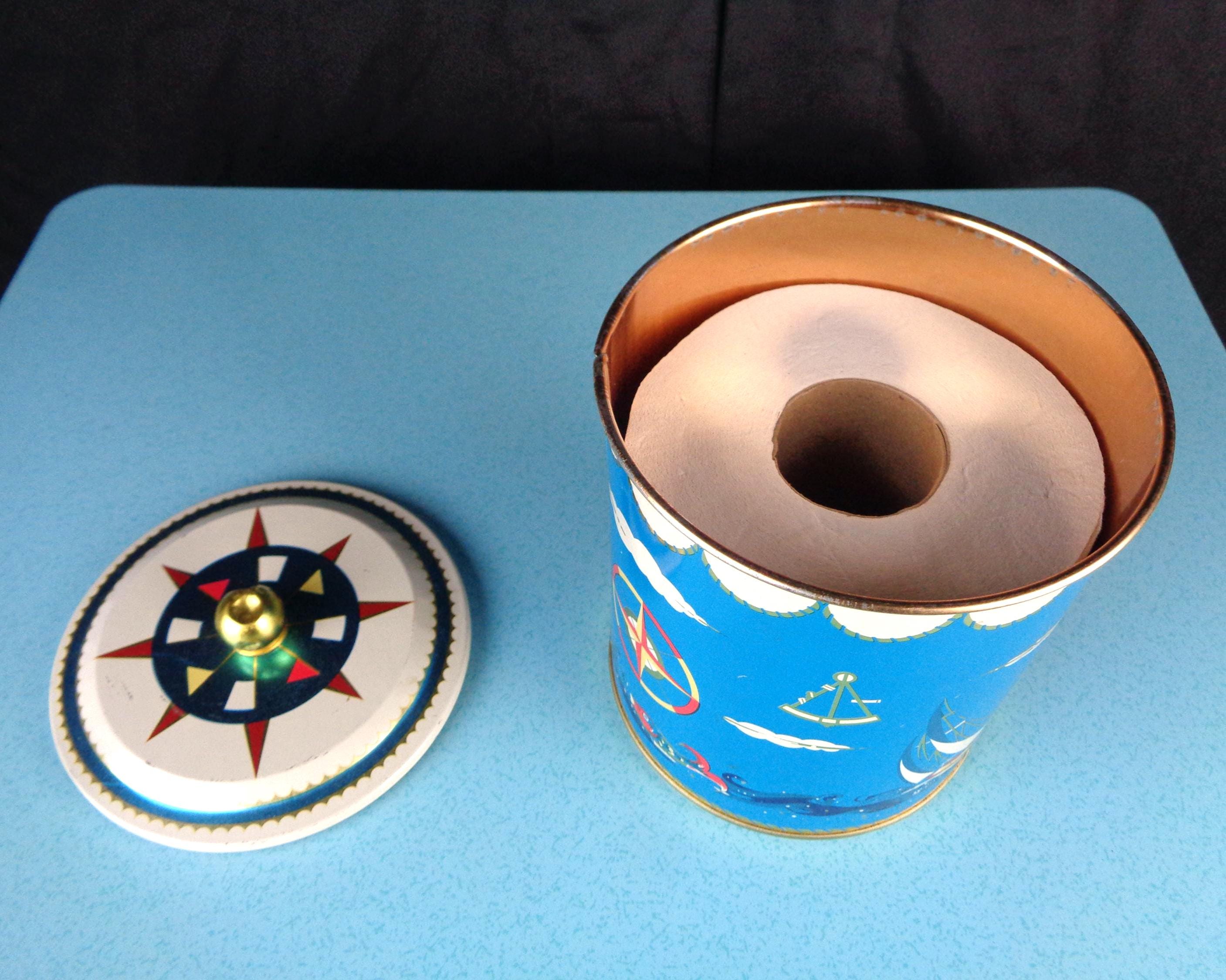 This lovely unique vibrant 1960s retro decorative tin, bin, container, canister.