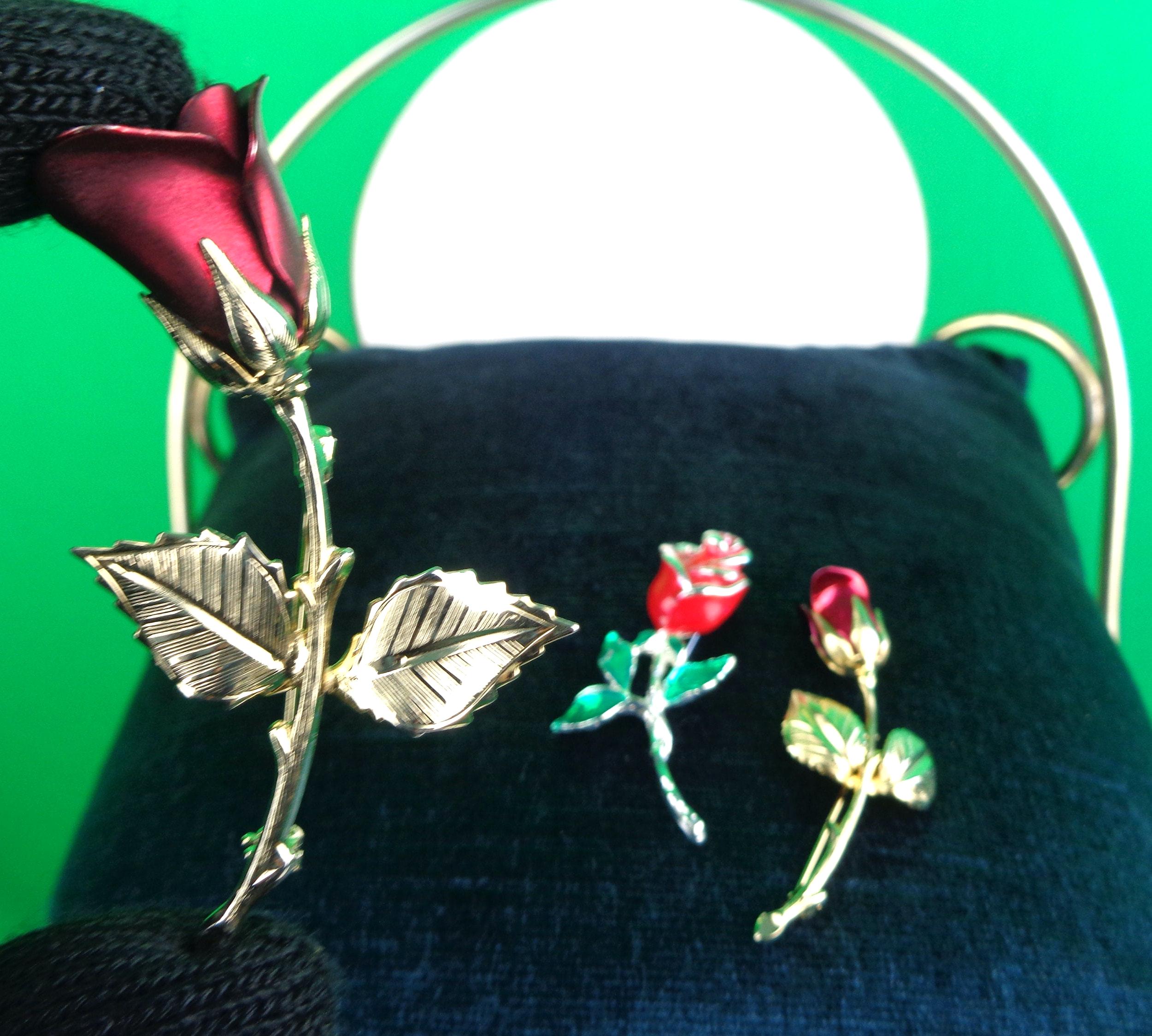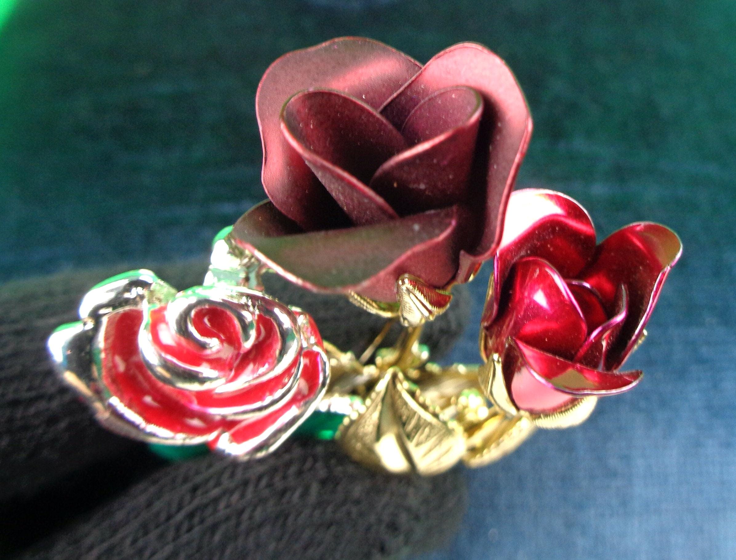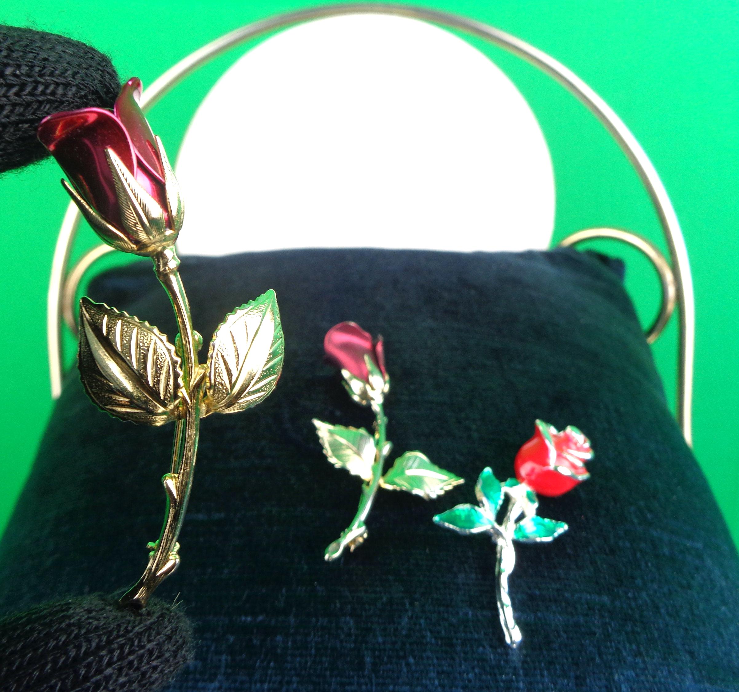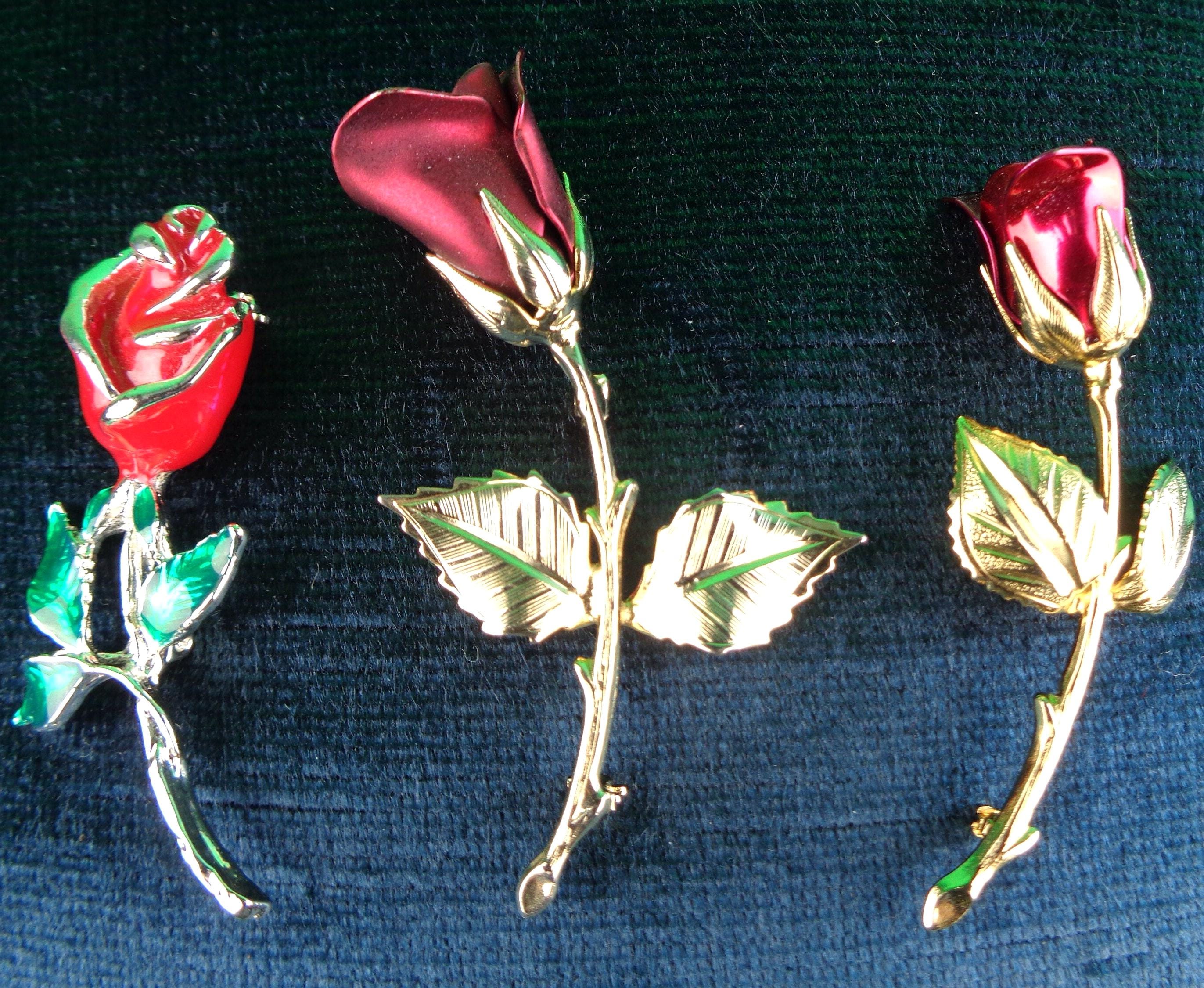 Features 3 different styles and hues with glossy and shinny and muted enamel detailing with carved stems and leaves! Great compliment pieces!