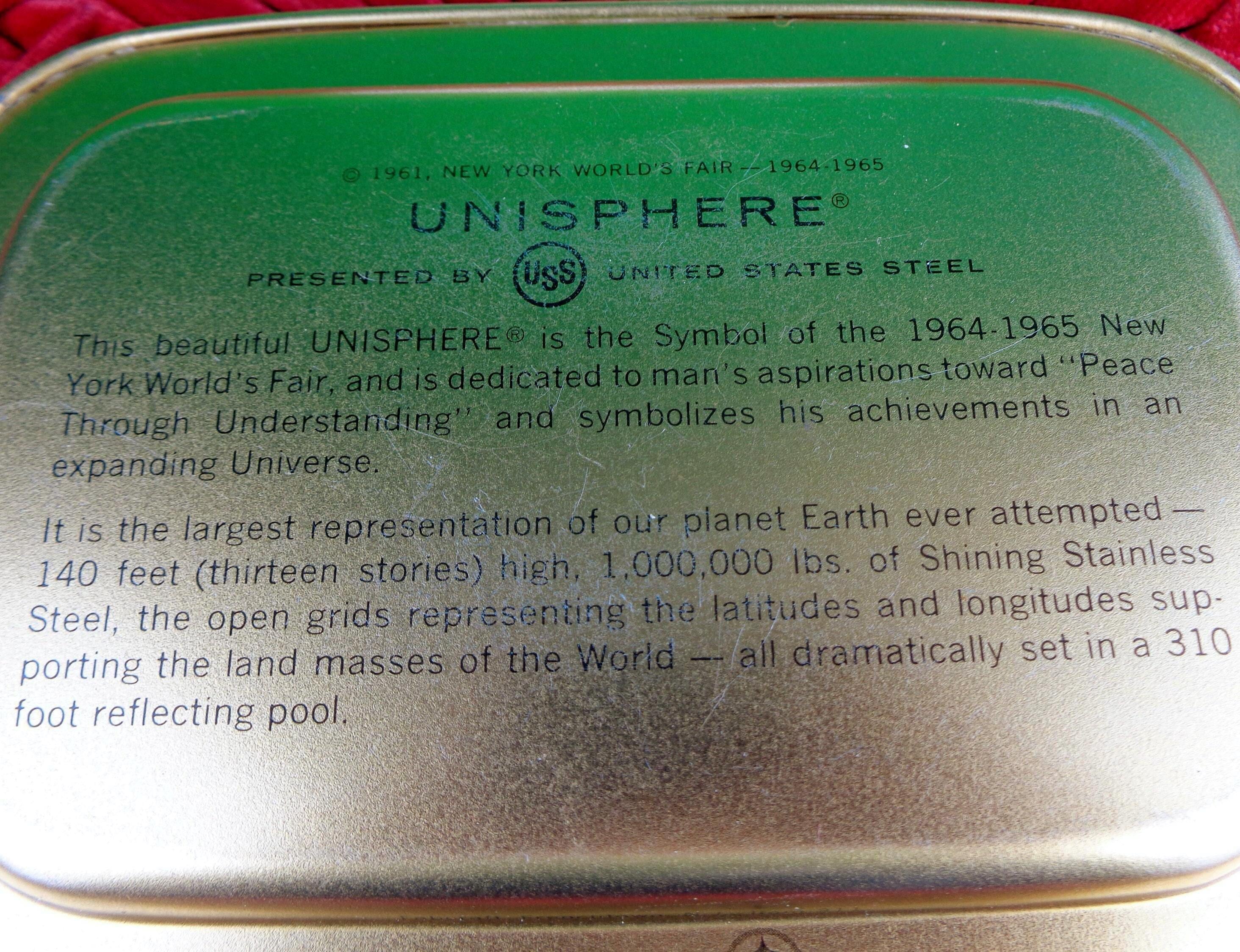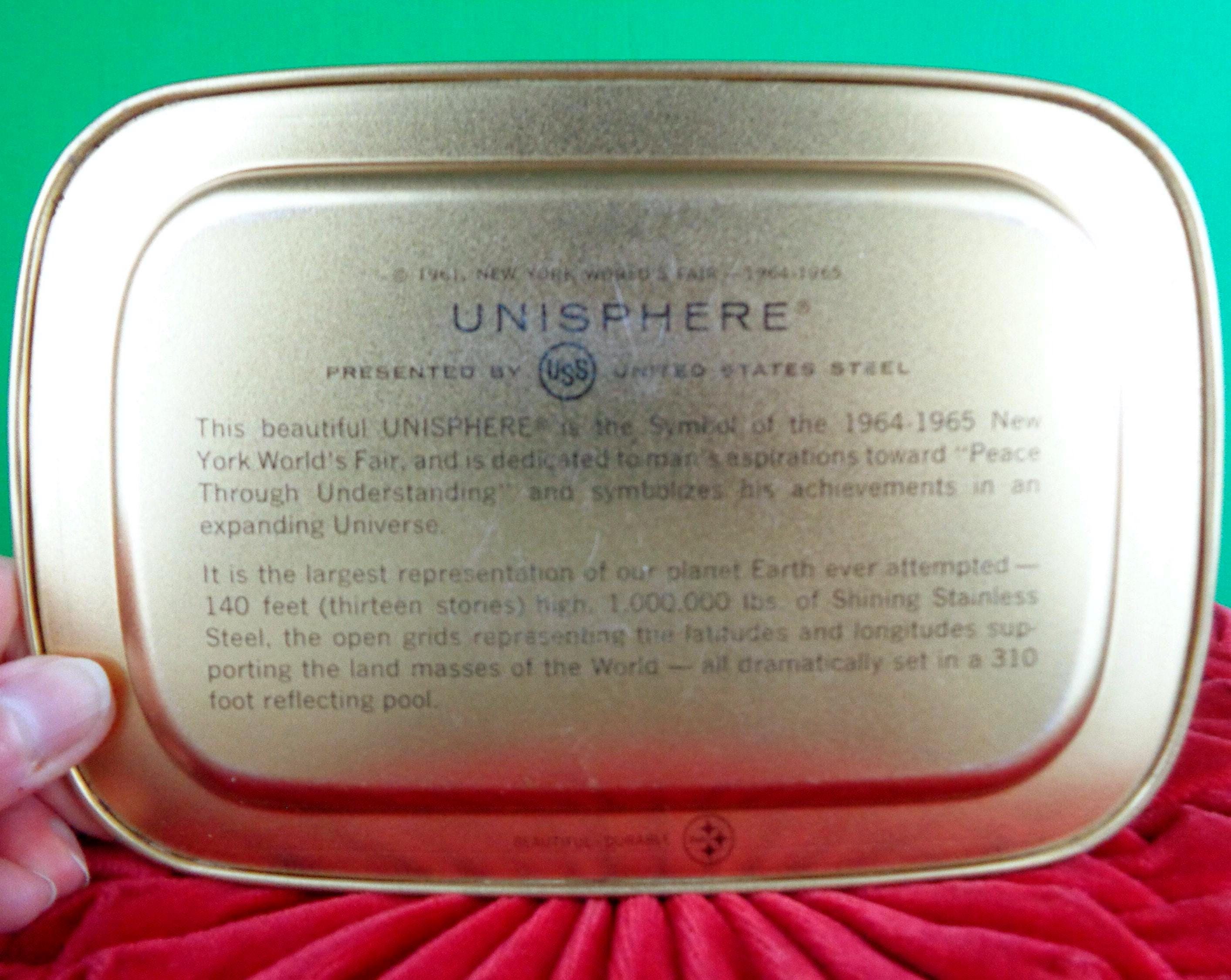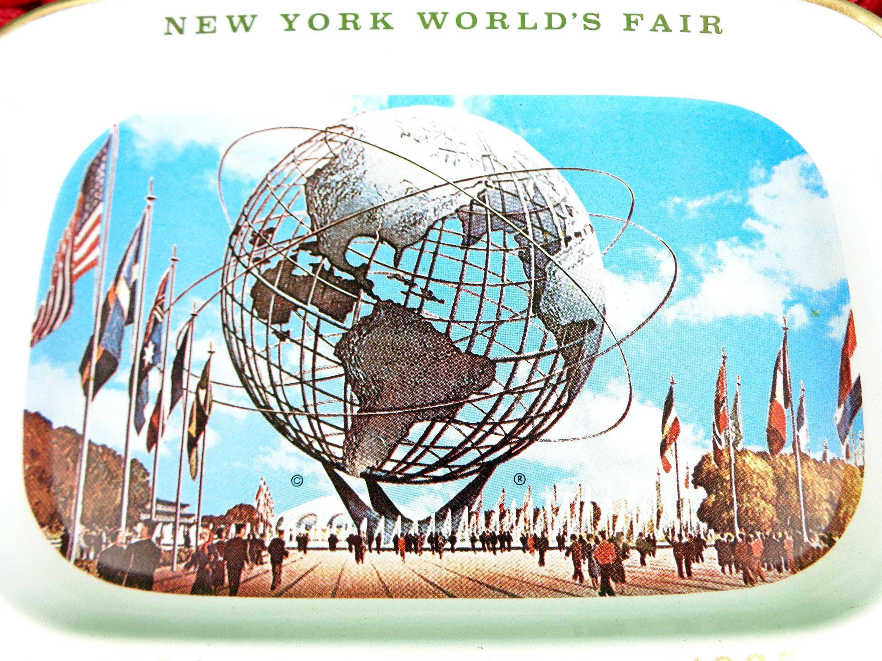 Features a futuristic New York World's Fair theme with bright enamel painting inside, literature about new ideas of what the futures may look like on the back! Great piece!