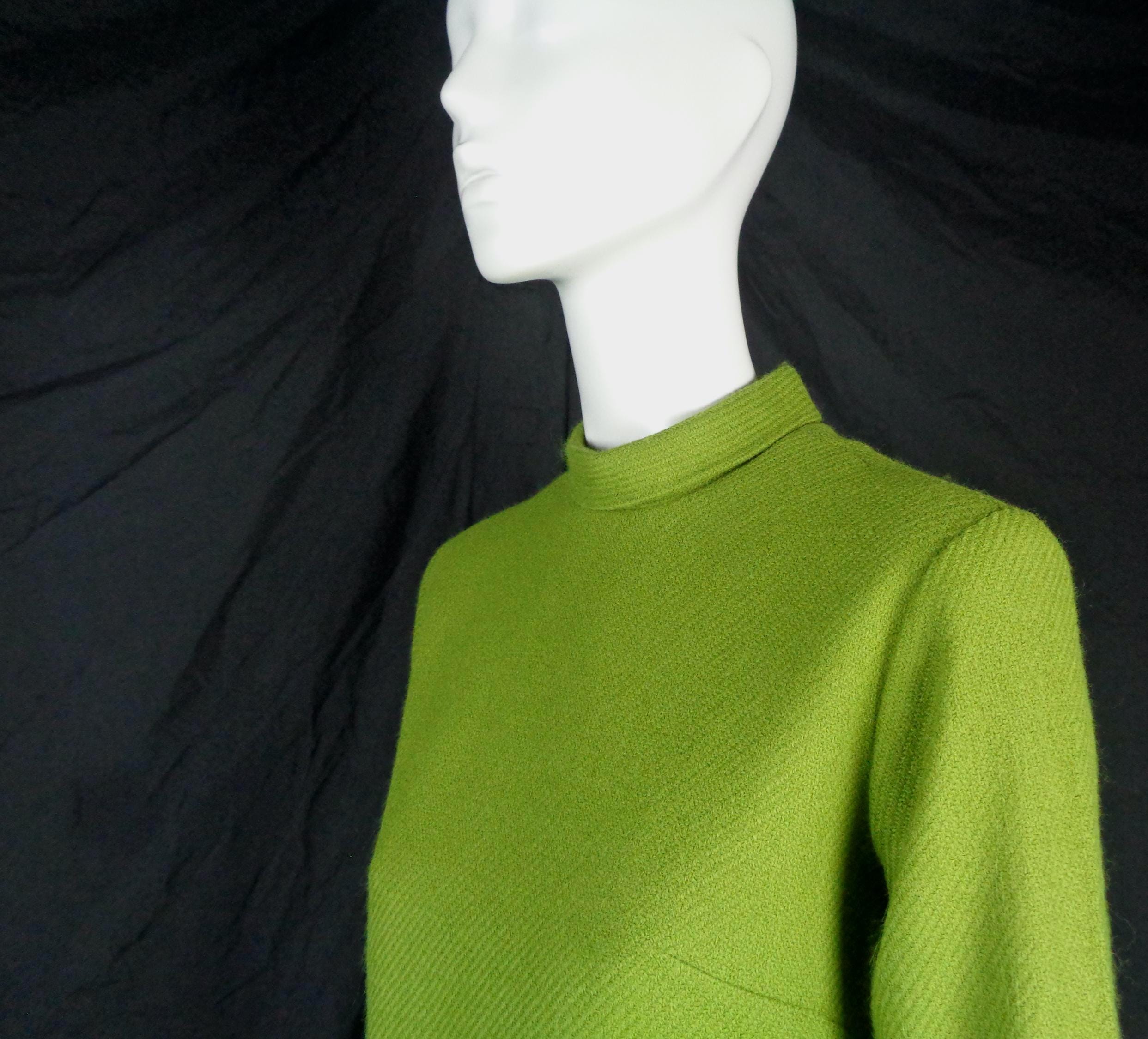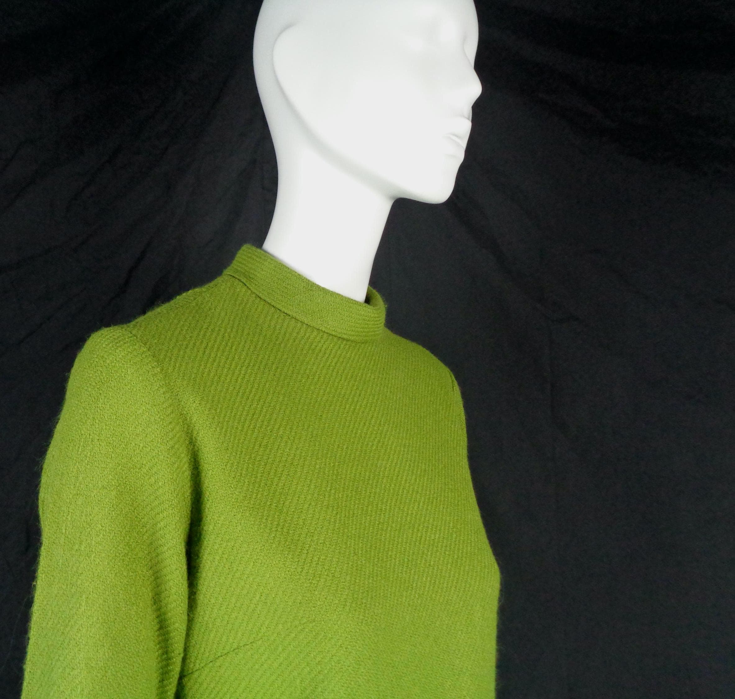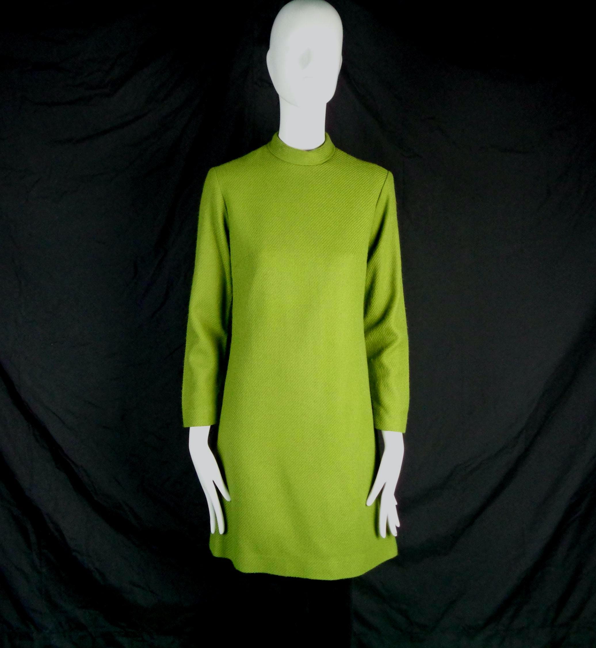 This lovely stylish vibrant 1960s pencil sheath, dress. Features long sleeves, with a back metal zipper, hook eye closer top collar, reverse lining, soft comfy fabric, material throughout! Great compliment piece!