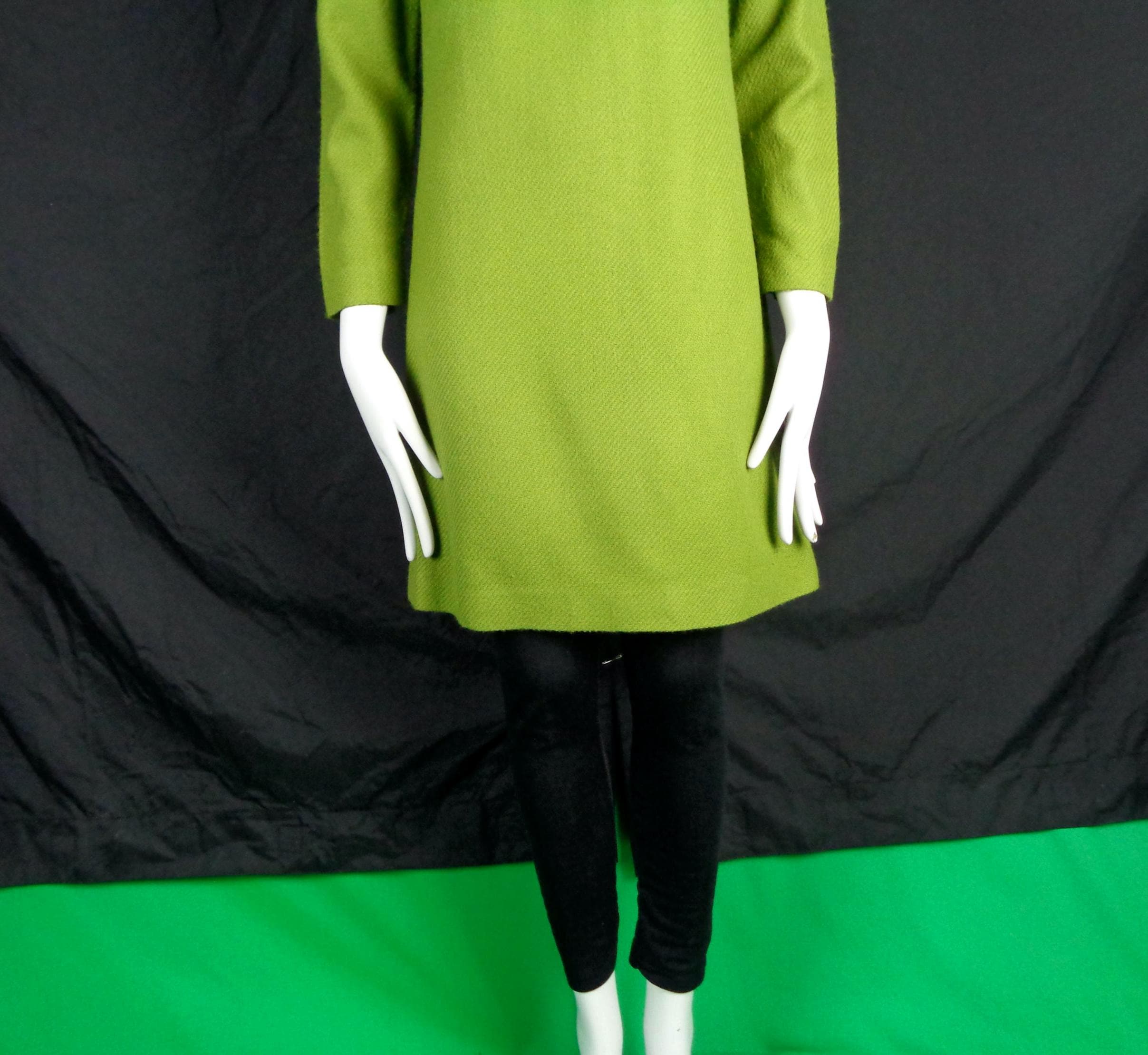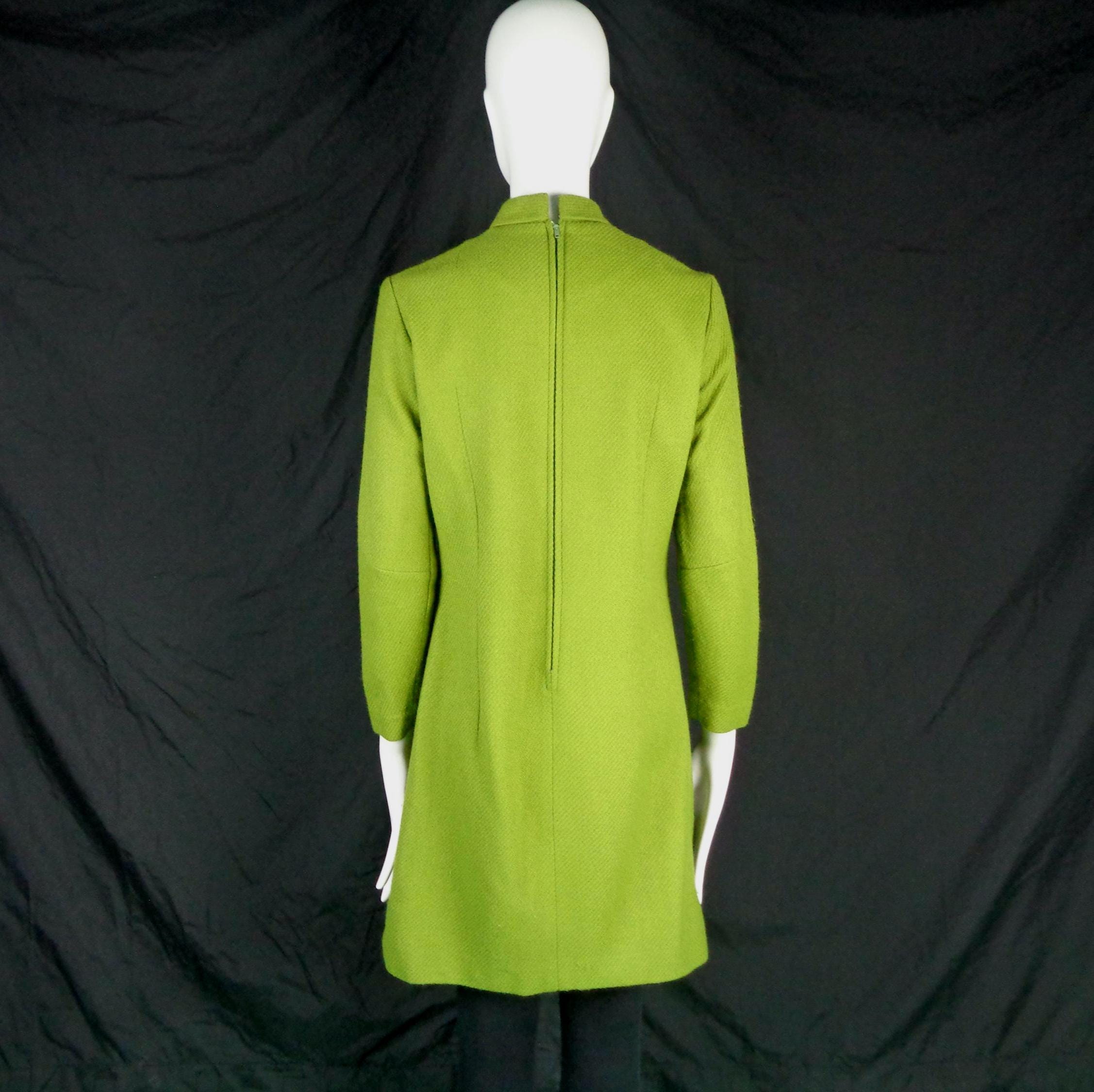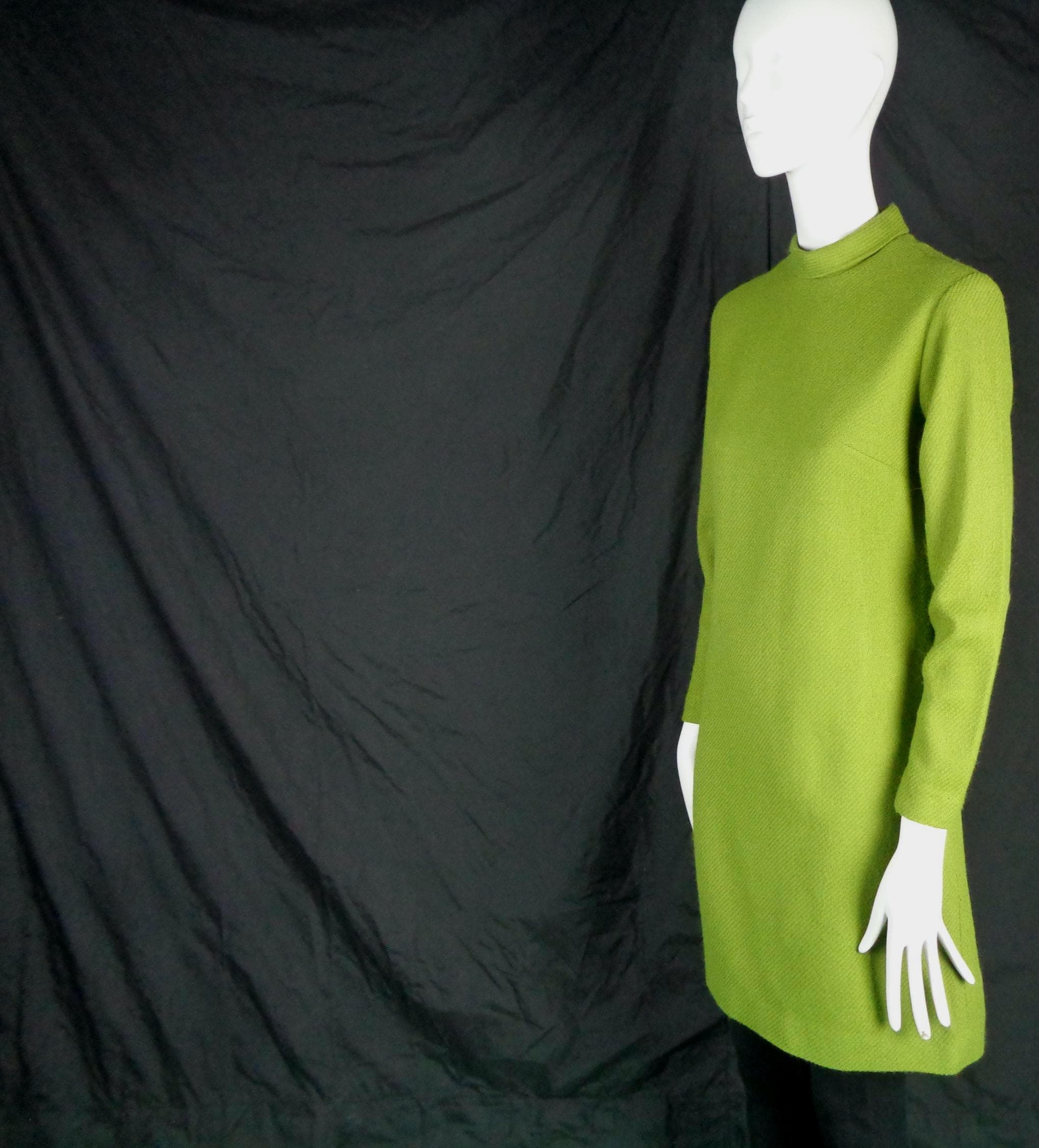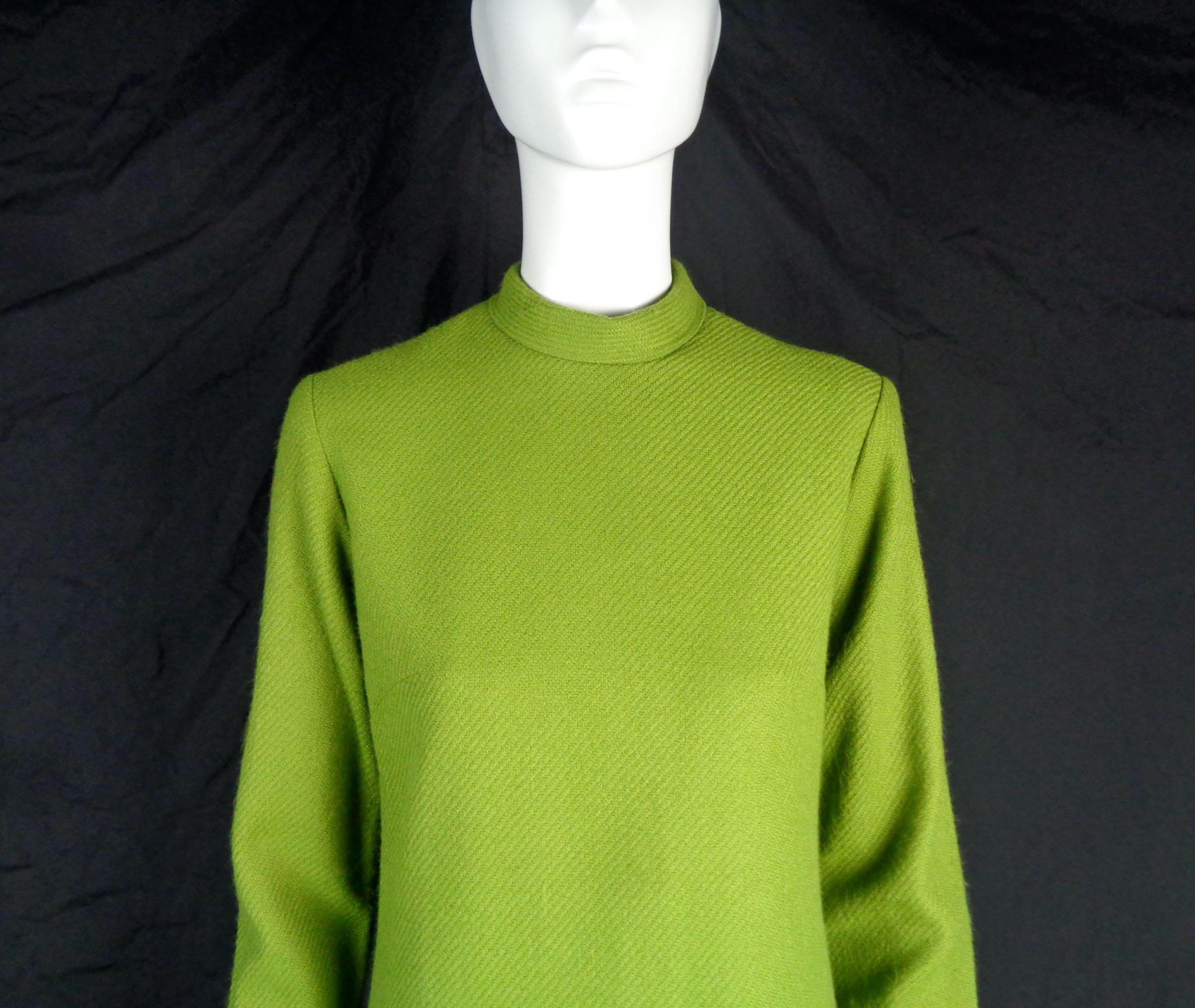 This lovely stylish vibrant 1960s pencil sheath, dress. Features long sleeves, with a back metal zipper, hook eye closer top collar, reverse lining, soft comfy fabric, material throughout! Great compliment piece!