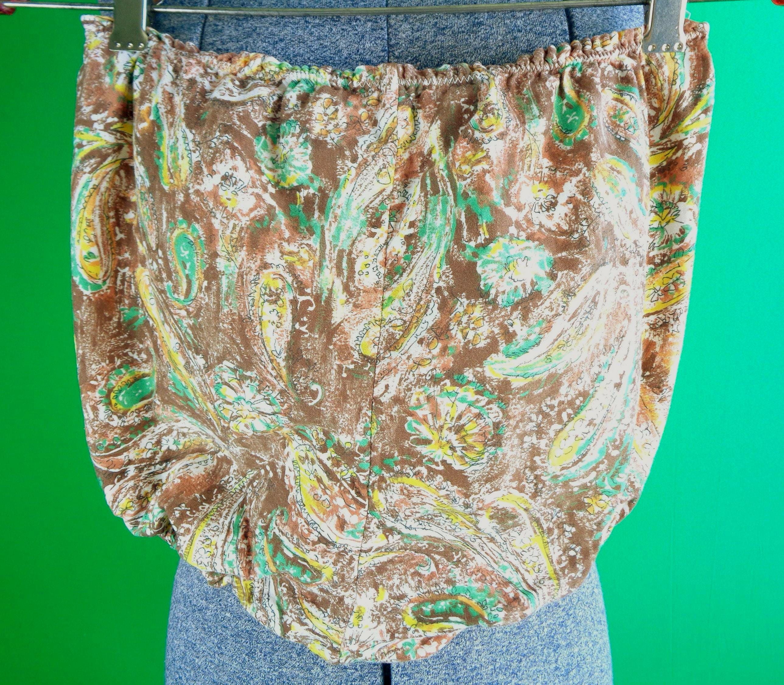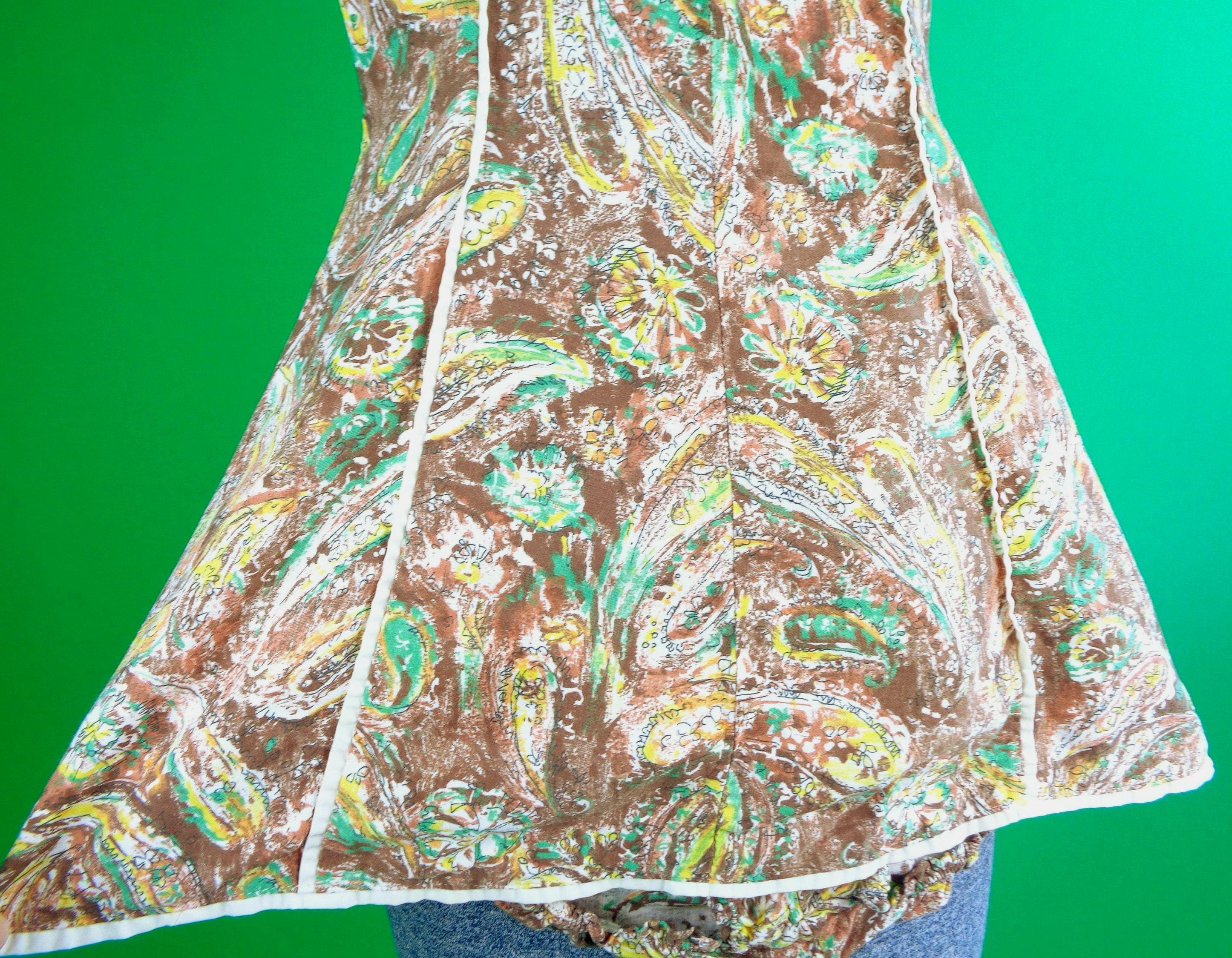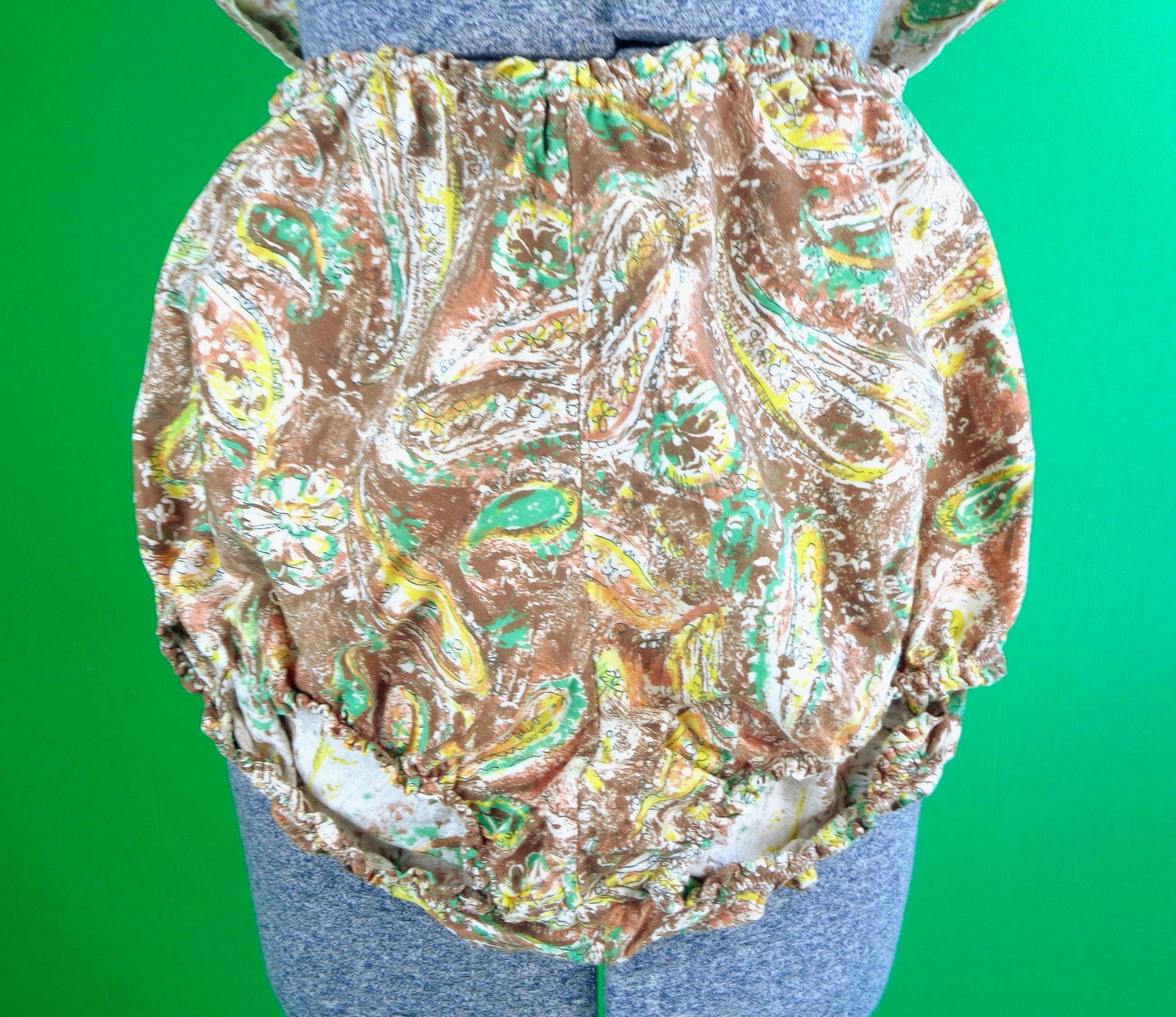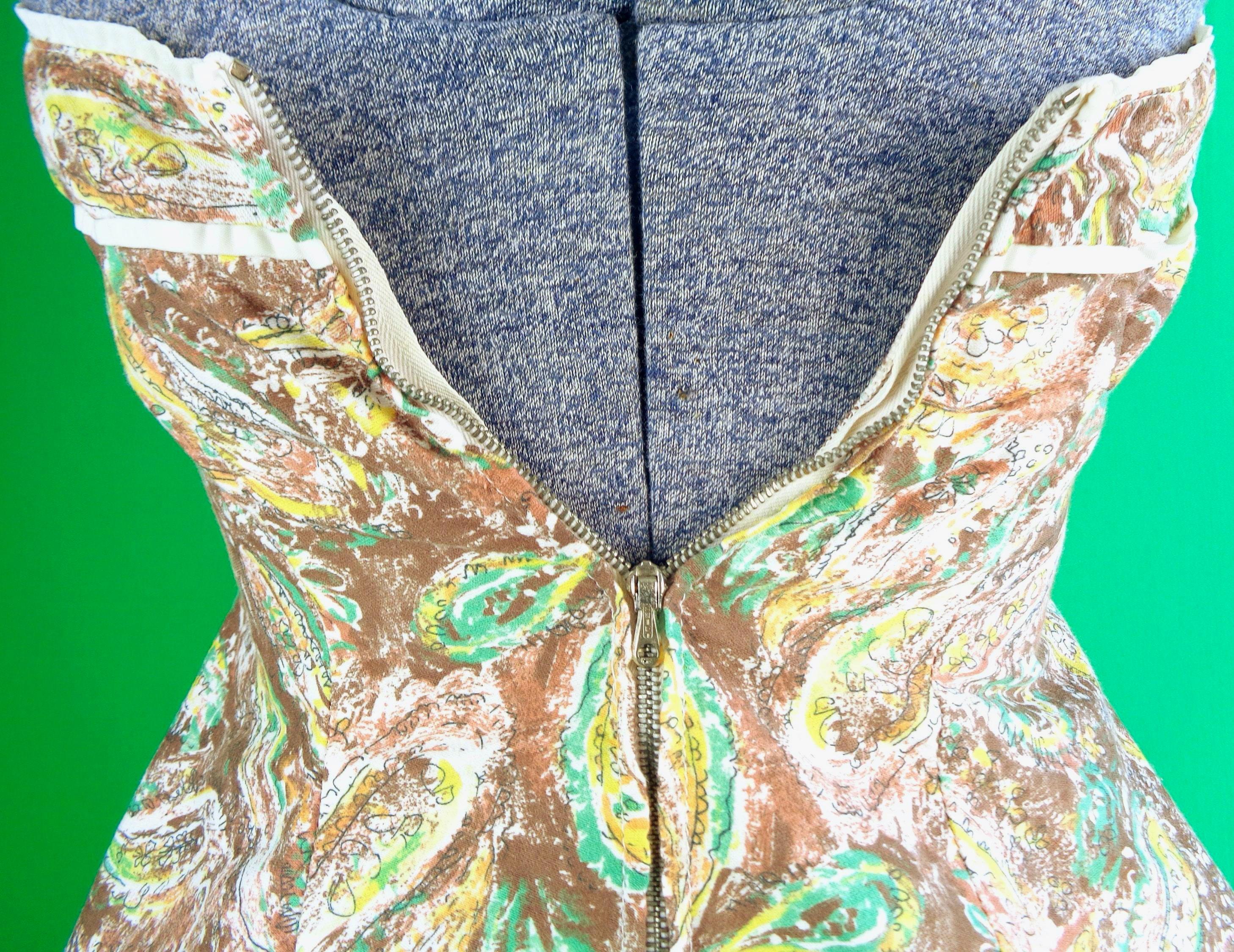This lovely stylish, unique 1950s 60s romper, playsuit, bathing, swimwear, bloomer, short pant, skirt features top tie straps, front shelf bust, back metal zipper, matching bloomers, with an abstract pattern, design and ultra soft fabric, material throughout!