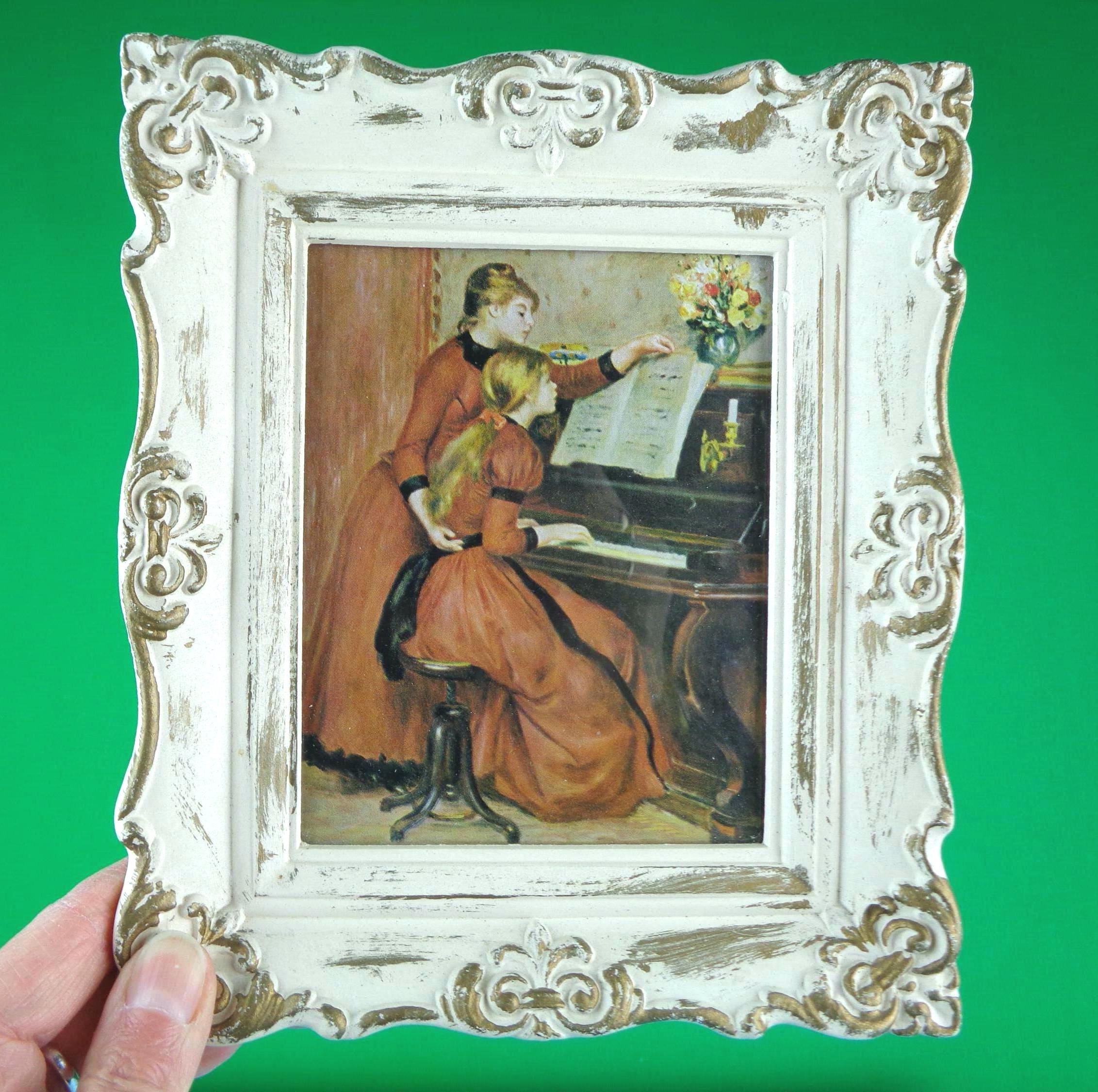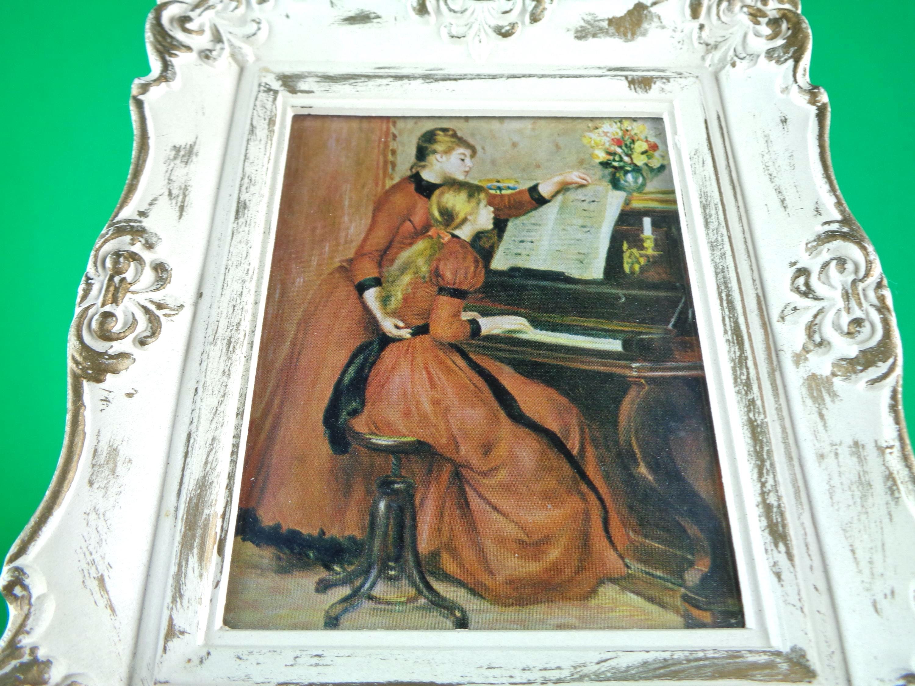 This lovely 1950s 60s retro, Renoir 1889 print portrait picture frame. Features 2 colonial, victorian women and young girl teaching her piano lessons, with a decorative frame! Great piece!