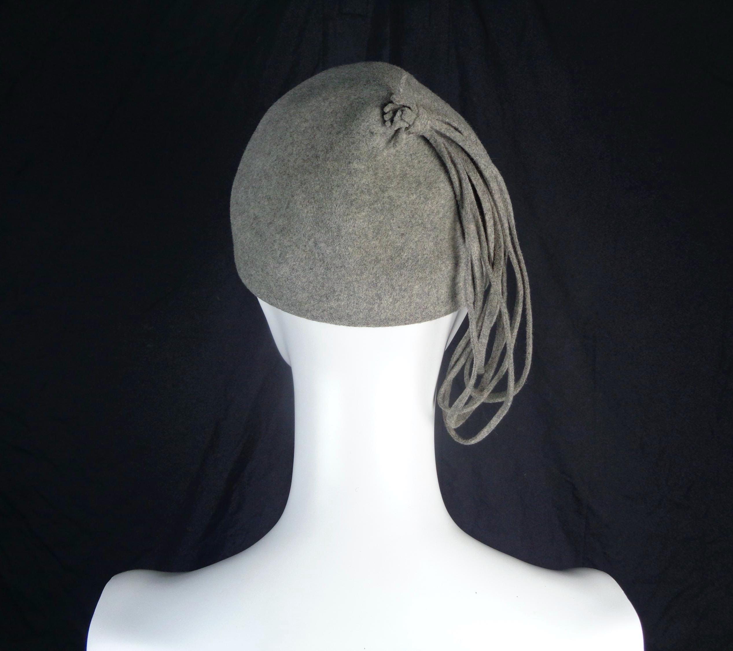 Features a 5 decorative cascading loops tassel, that can be displayed on each side, with a tie at the top to hold in place, a layered slight brim, with the original factory stamp inside, light textured material throughout!
