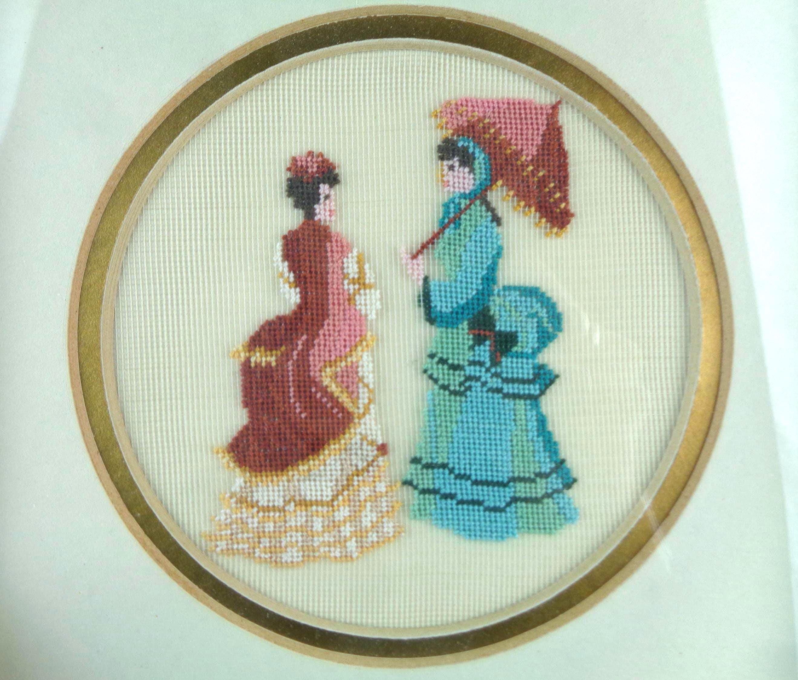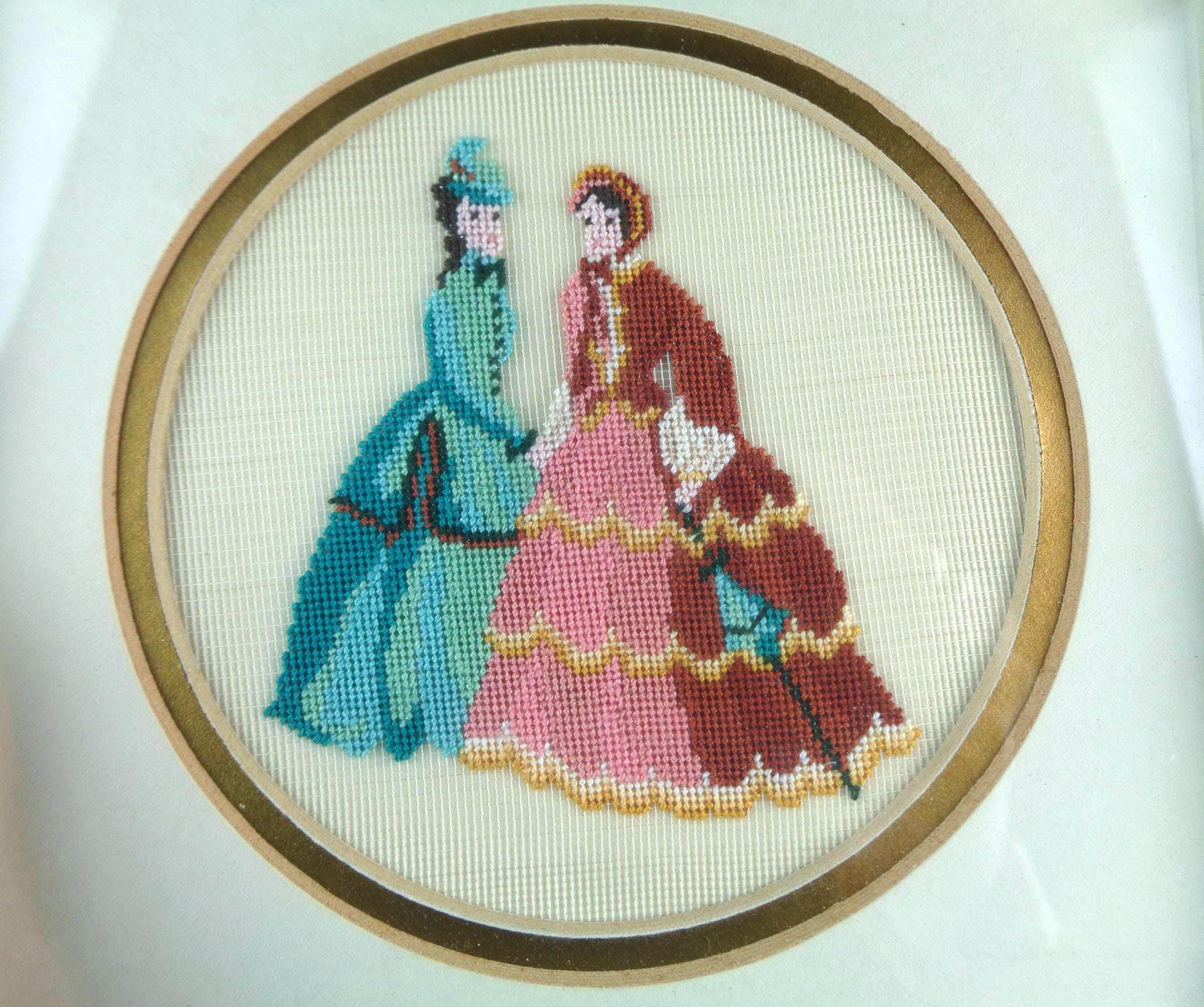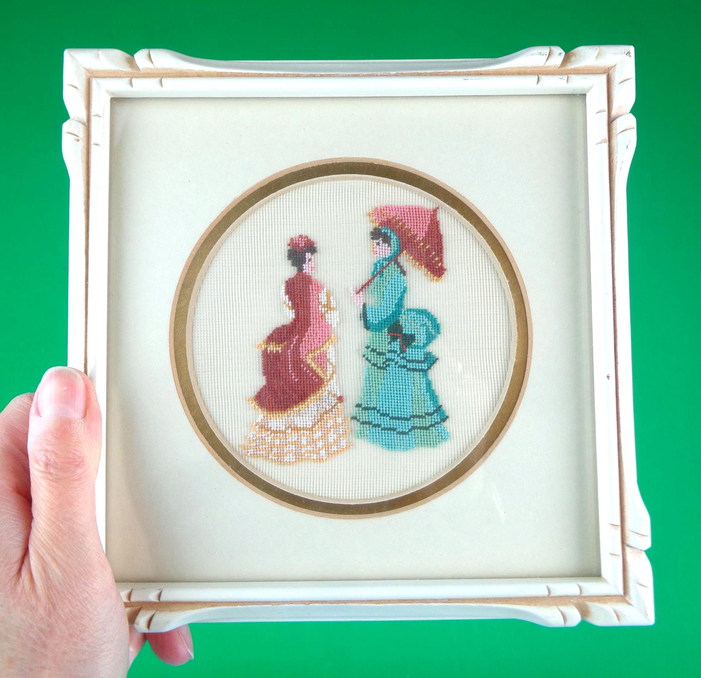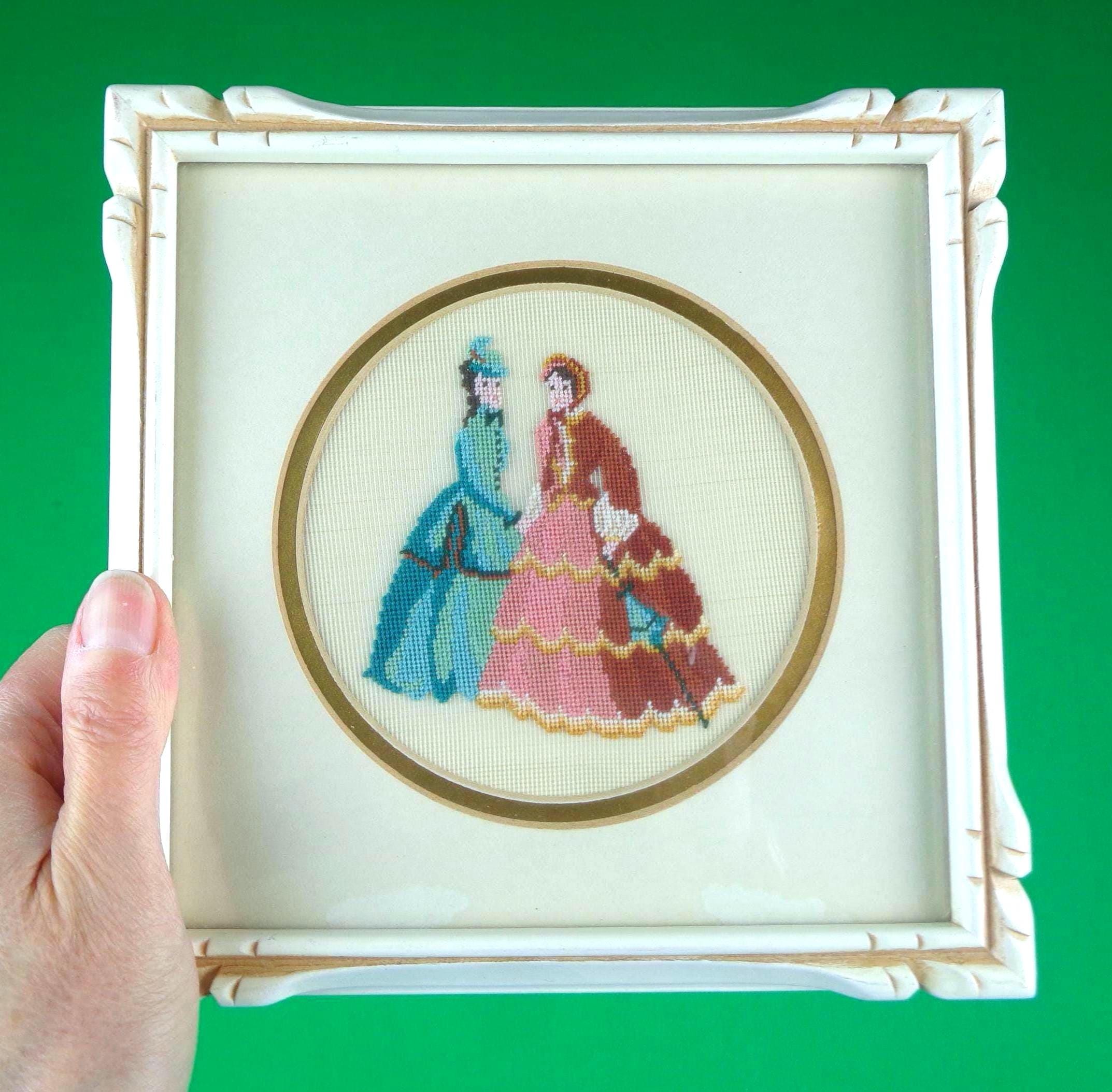 These lovely elegant 1940s 50s Victorian women needle, petit point pictures. Features a fine petit point pattern, design with a decorative carved frame, thick wire for hanging, both pictures are professionally framed! Great pieces!