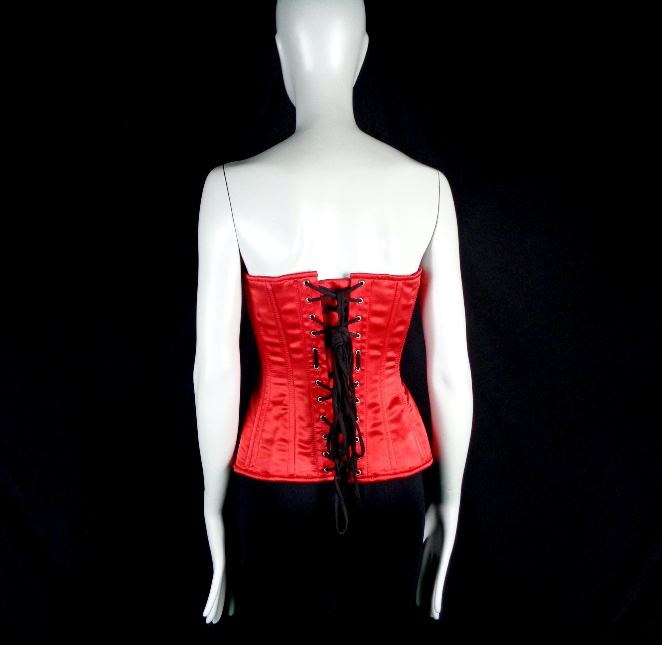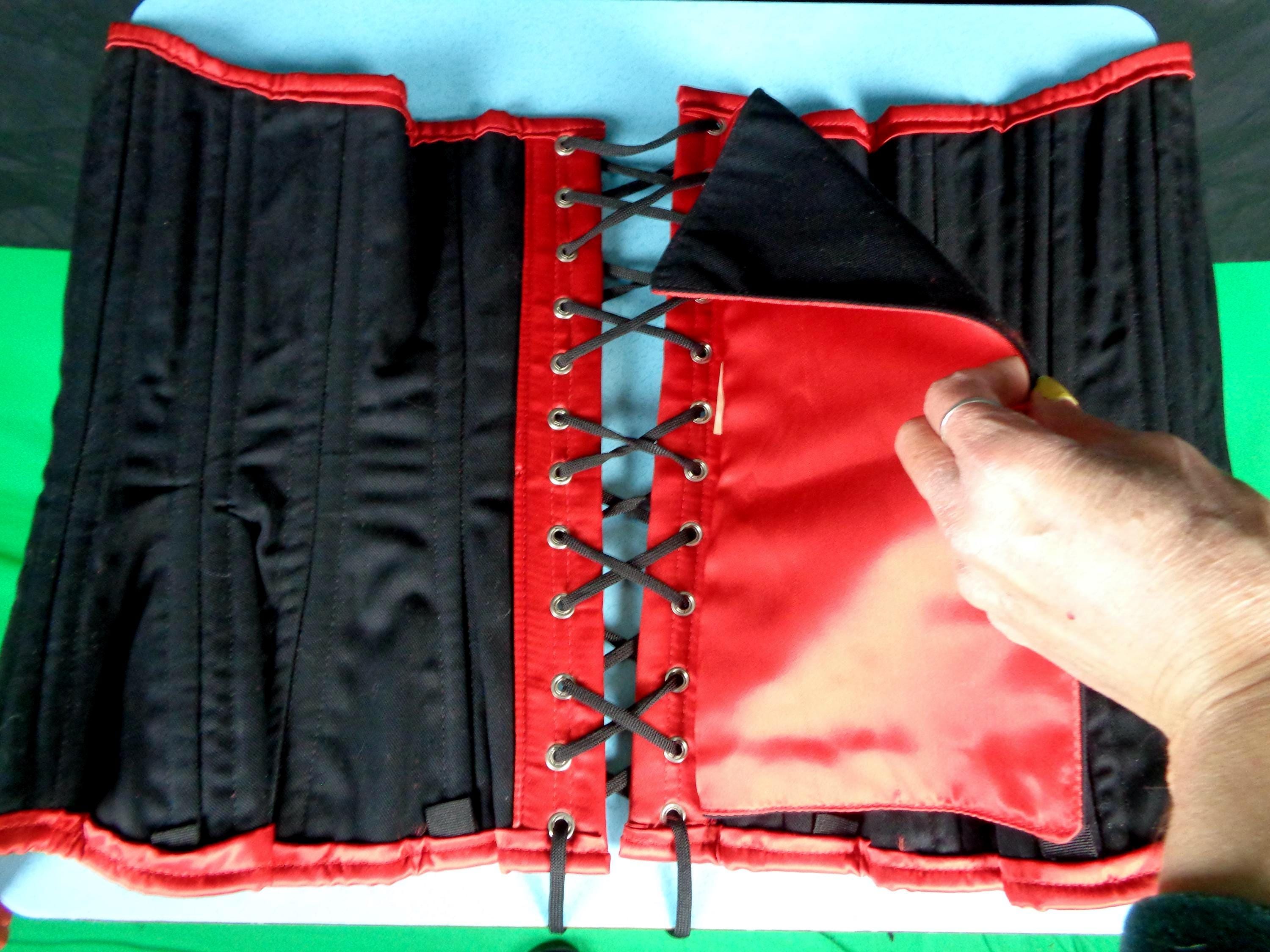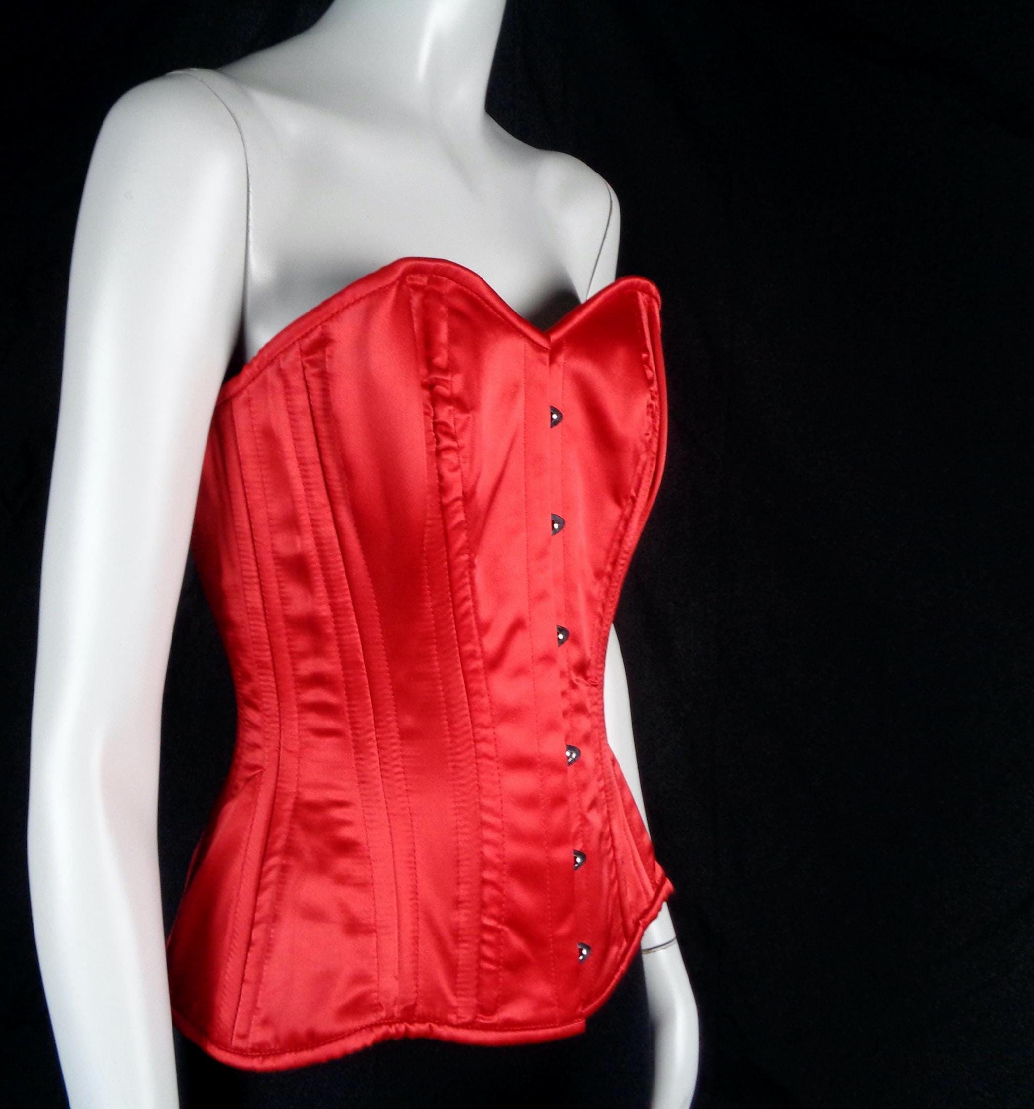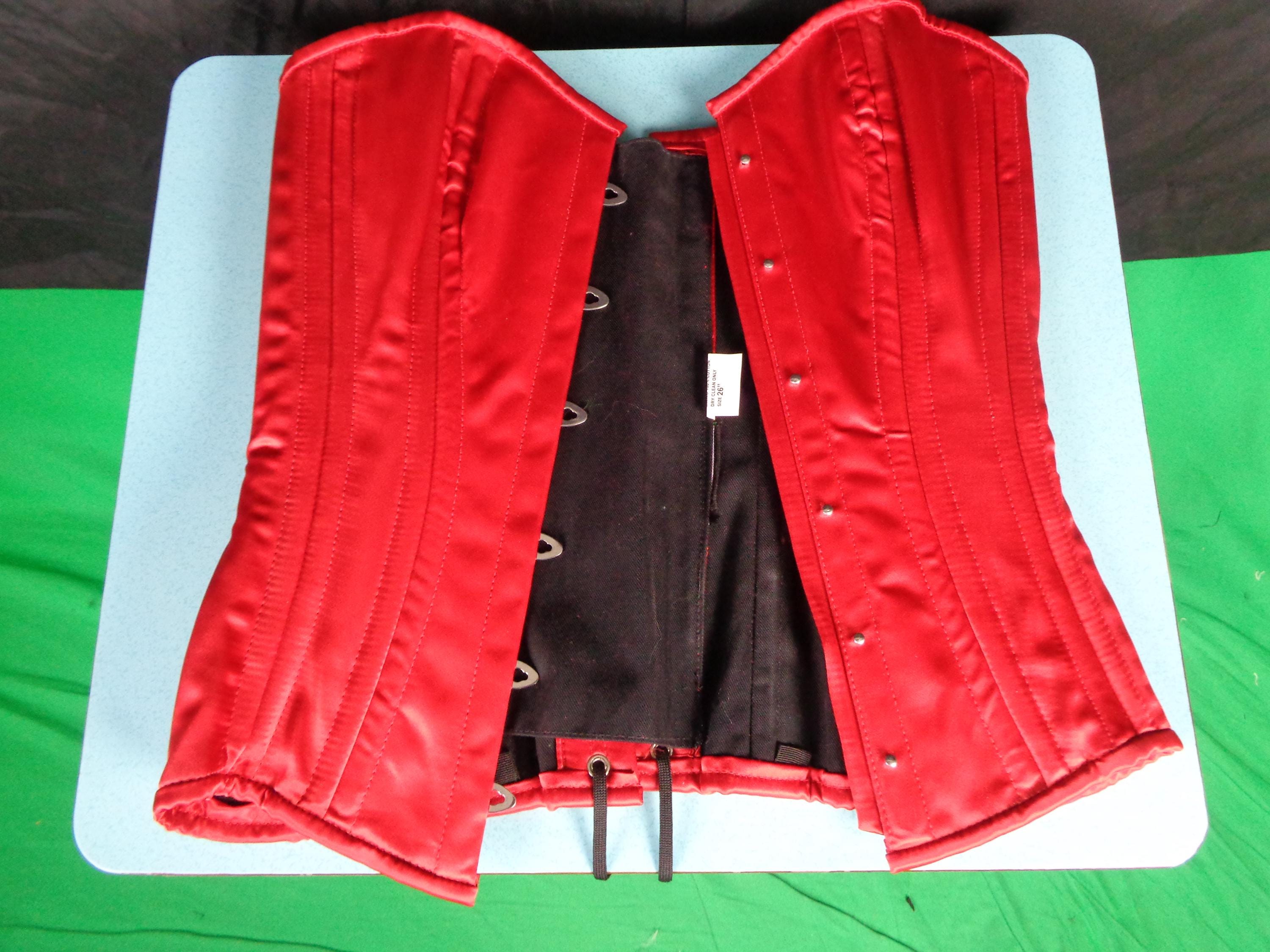 Features 8 front boning panels, 4 side boning panels, 8 back boning panels, with 6 slide hook and knob front closures, with a long back tie and soft fabric, material throughout! Great compliment piece!
