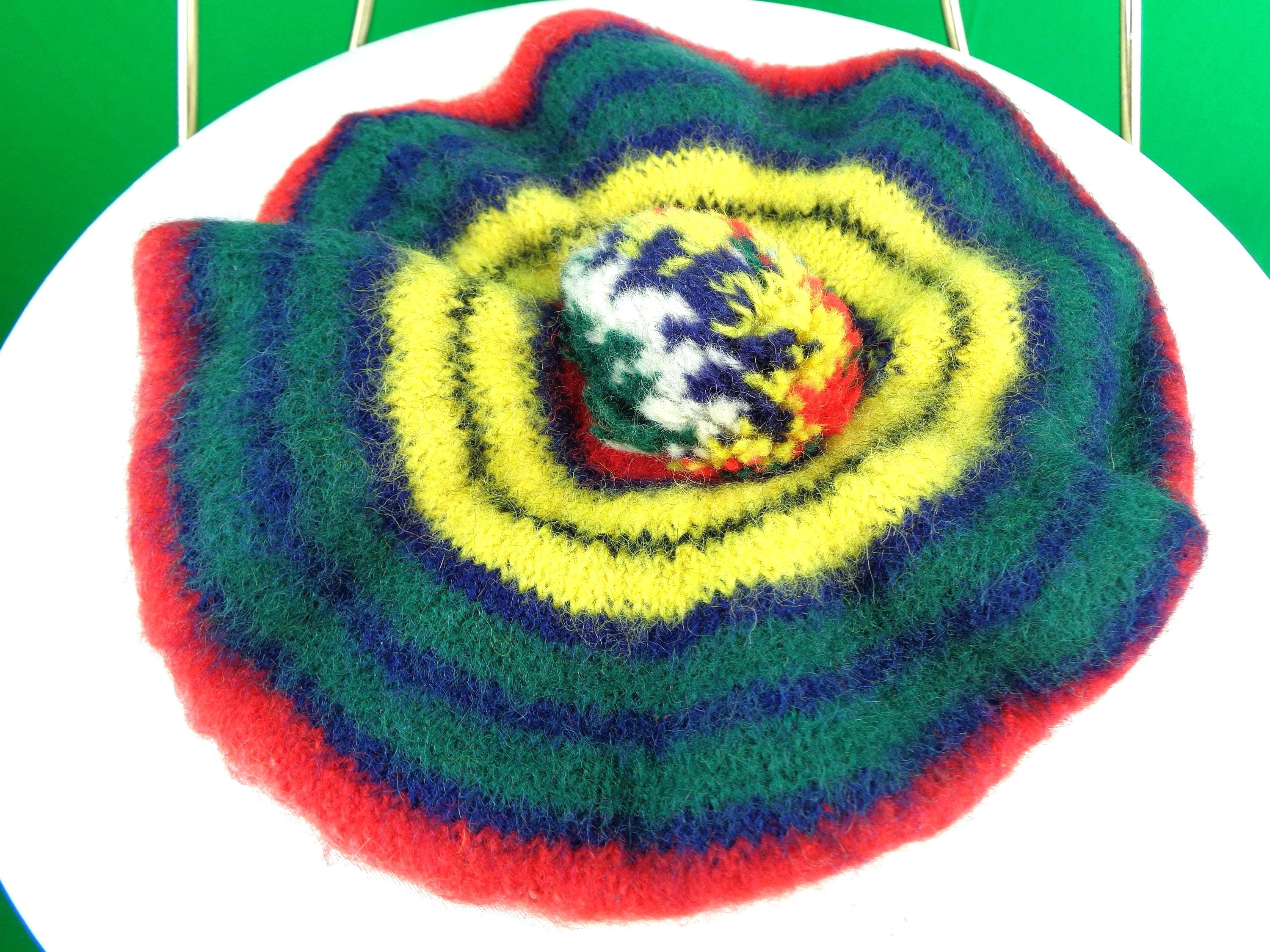 Features a single top decorative pom pom, inside with a sturdy elastic, soft material, fabric, and vibrant pattern, design throughout! Great compliment piece!