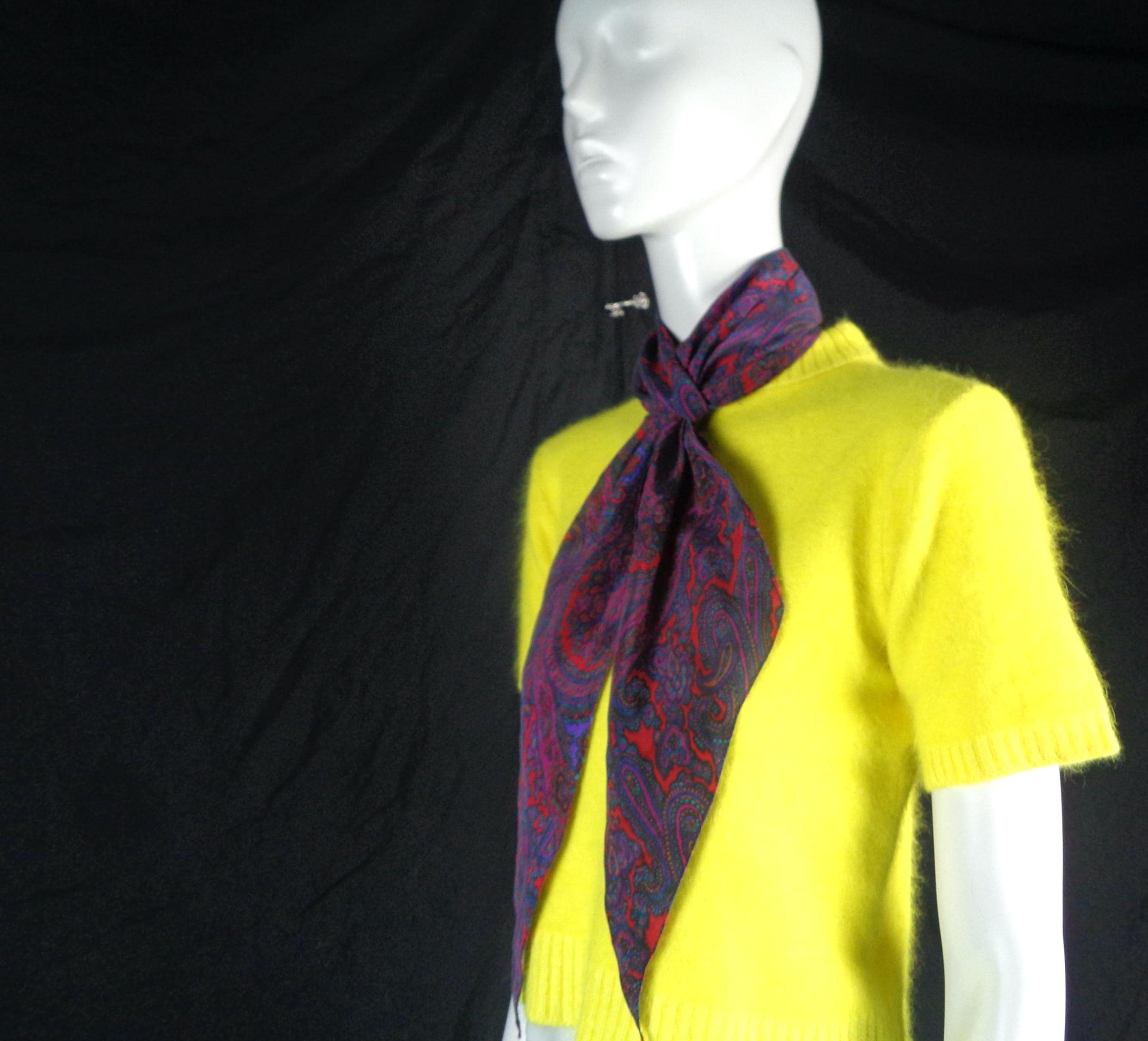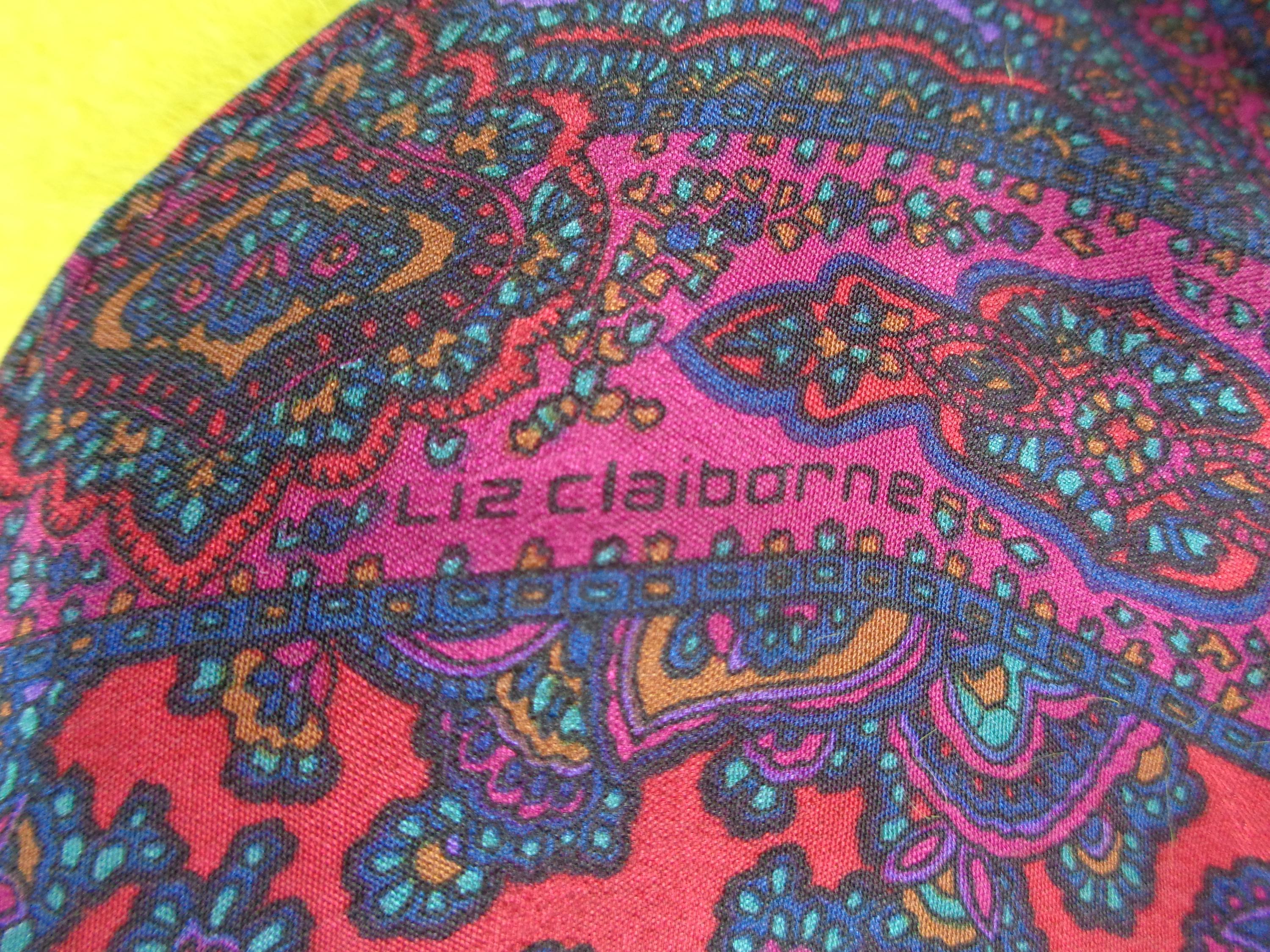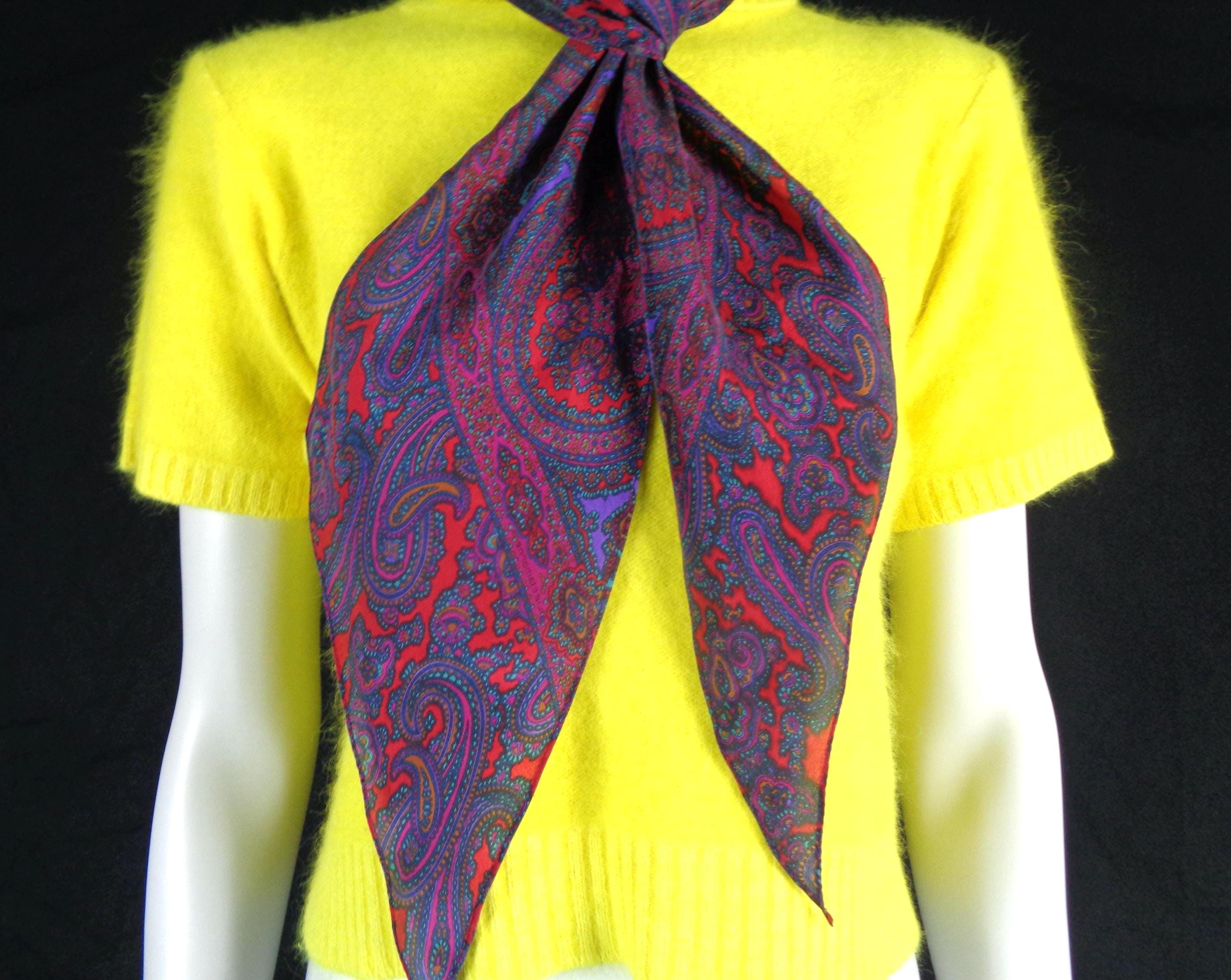 Features an oblong shape, with pointed edges, a vibrant bright paisley pattern, design and ultra a soft material throughout! Great compliment piece!